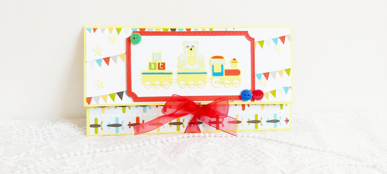 Детска картичка-плик за рожден ден на момченце. С мини картичка за пожелания. Размер: 21/11 см Единична бройка.