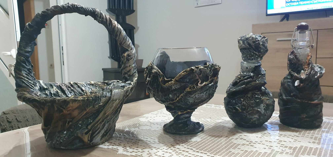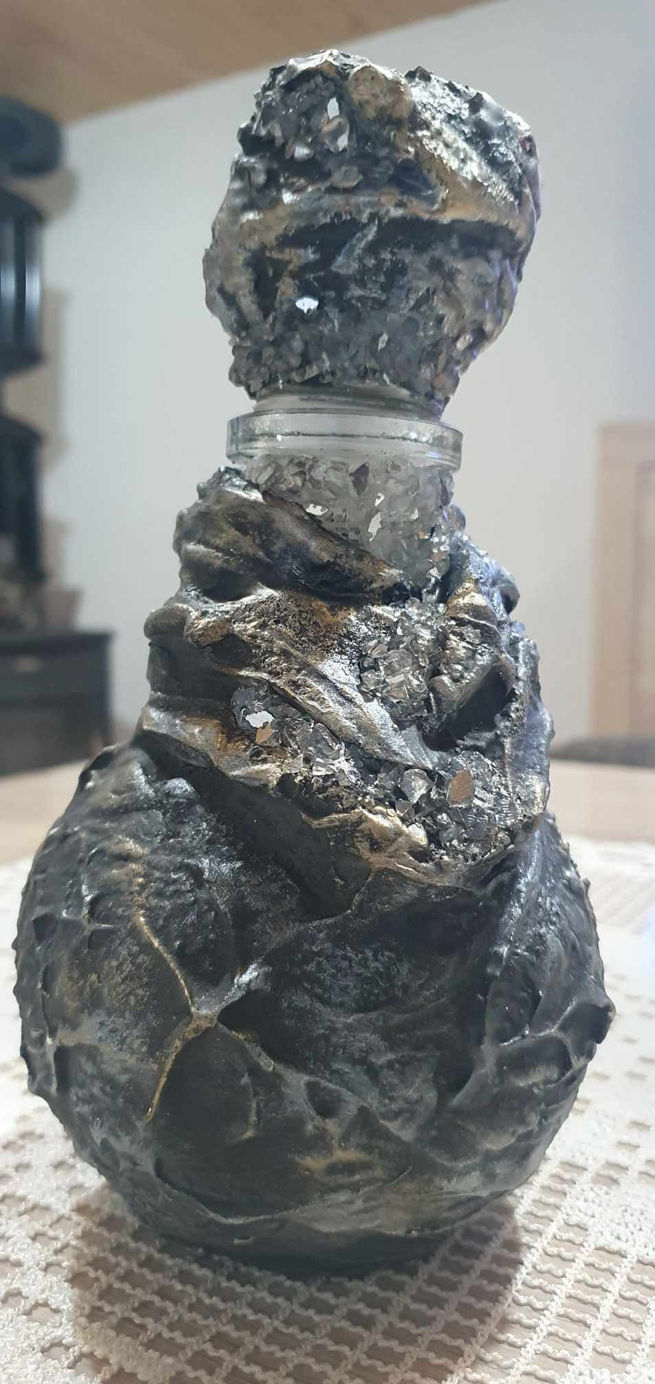 Ръчно изработена и декорирана бутилка за алкохол, вместимост 500 мл. По желание, от страна на клиента, може да се добави и табелка за специален повод, годишнина, роден ден и др. Изработена е посредством смесена техника арт пластика, състаряване и др. Материалите, с които е изработена са акрилни пасти, текстил, бои, лакове, металици, декорация и други. Може да се използва, по предназначение. Препоръчвам ръчно измиване с неагресивни препарати, без употреба на абразиви. Може да се изработят по поръчка, срока за изработване е 7-10 дни, тъй като всеки един от процесите има нужда от технологично време. Продуктите са уникати, могат да се изработят подобни, но не и еднакви. Цената варира в зависимост от сложността и материалите, вложени в проекта. Доставка - изпращам с Еконт, за Сливен, може и лично предаване.