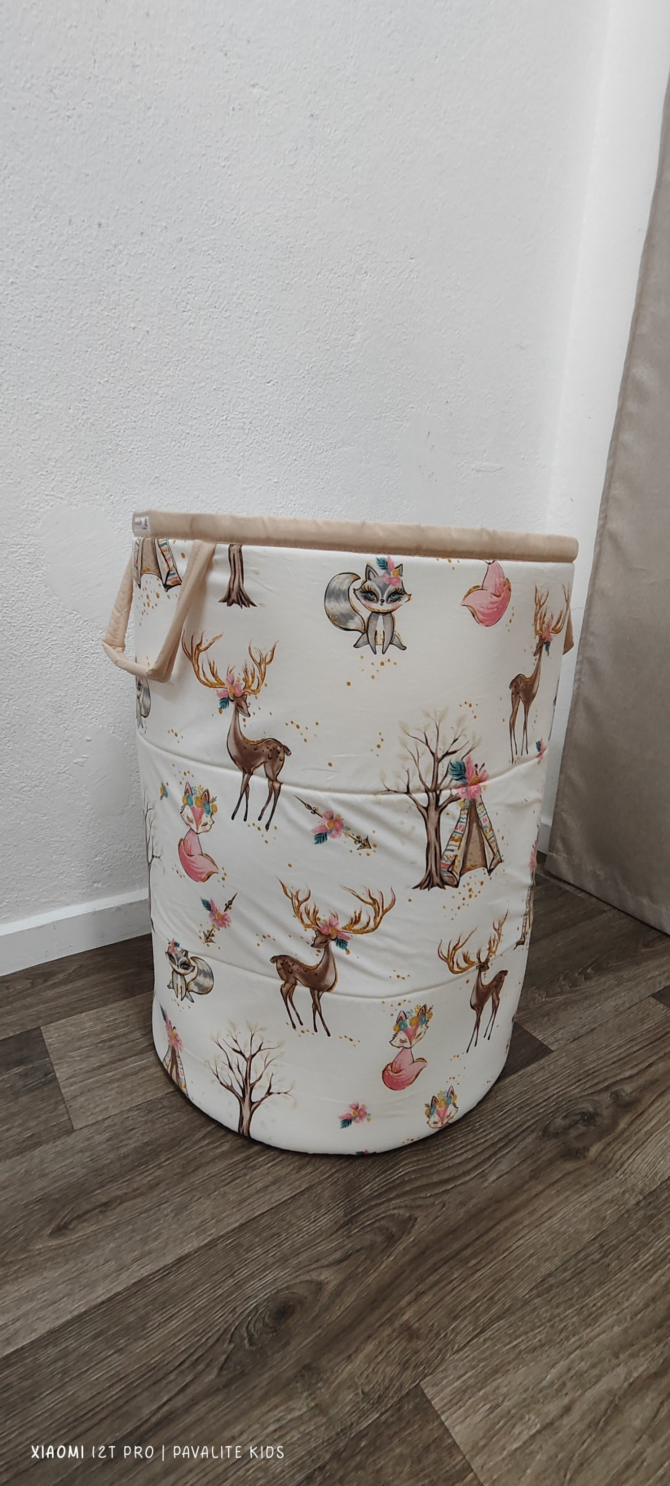 Текстилен кош за играчки. Основа на коша 40см, височина 50см. Може да се изработи в десен по ваше желание.. Може да се изработи със затваряне в горния край. Свържете се с ме на страничката ми във фейсбук https://www.facebook.com/profile.php?id=100076263302194 Или във Вайбър 0897735474