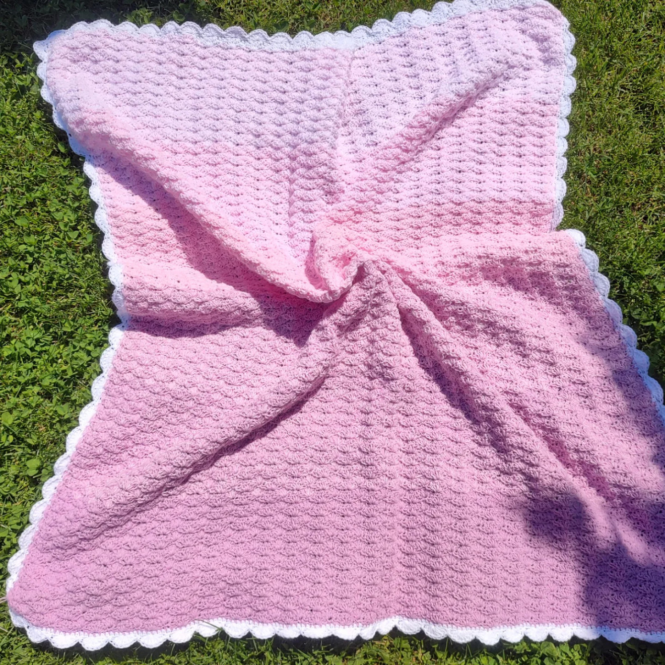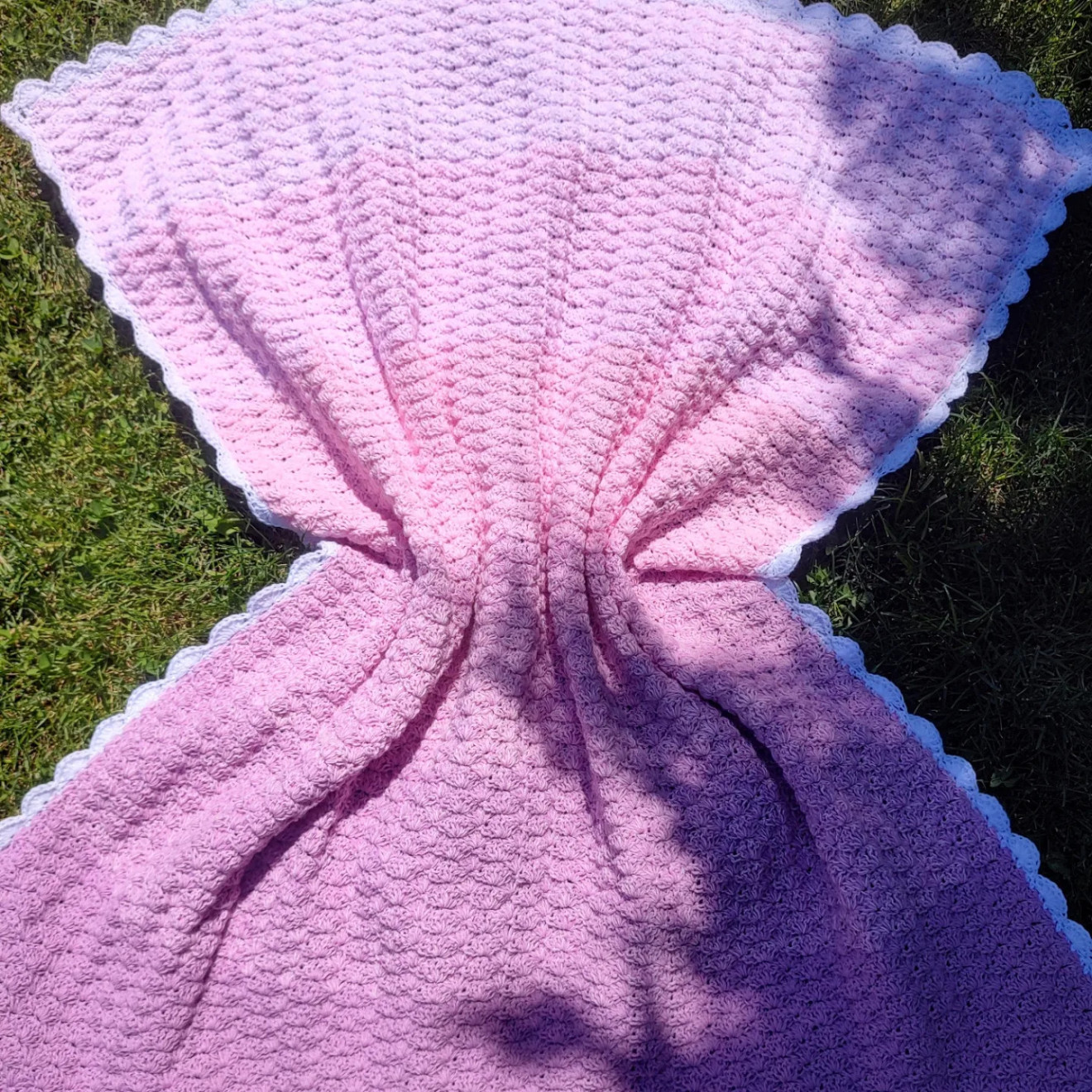Бебешко одеяло изплетено на една кука от мека акрилна прежда (100% акрил )в преливащи цветове . Размер 90см/110 см