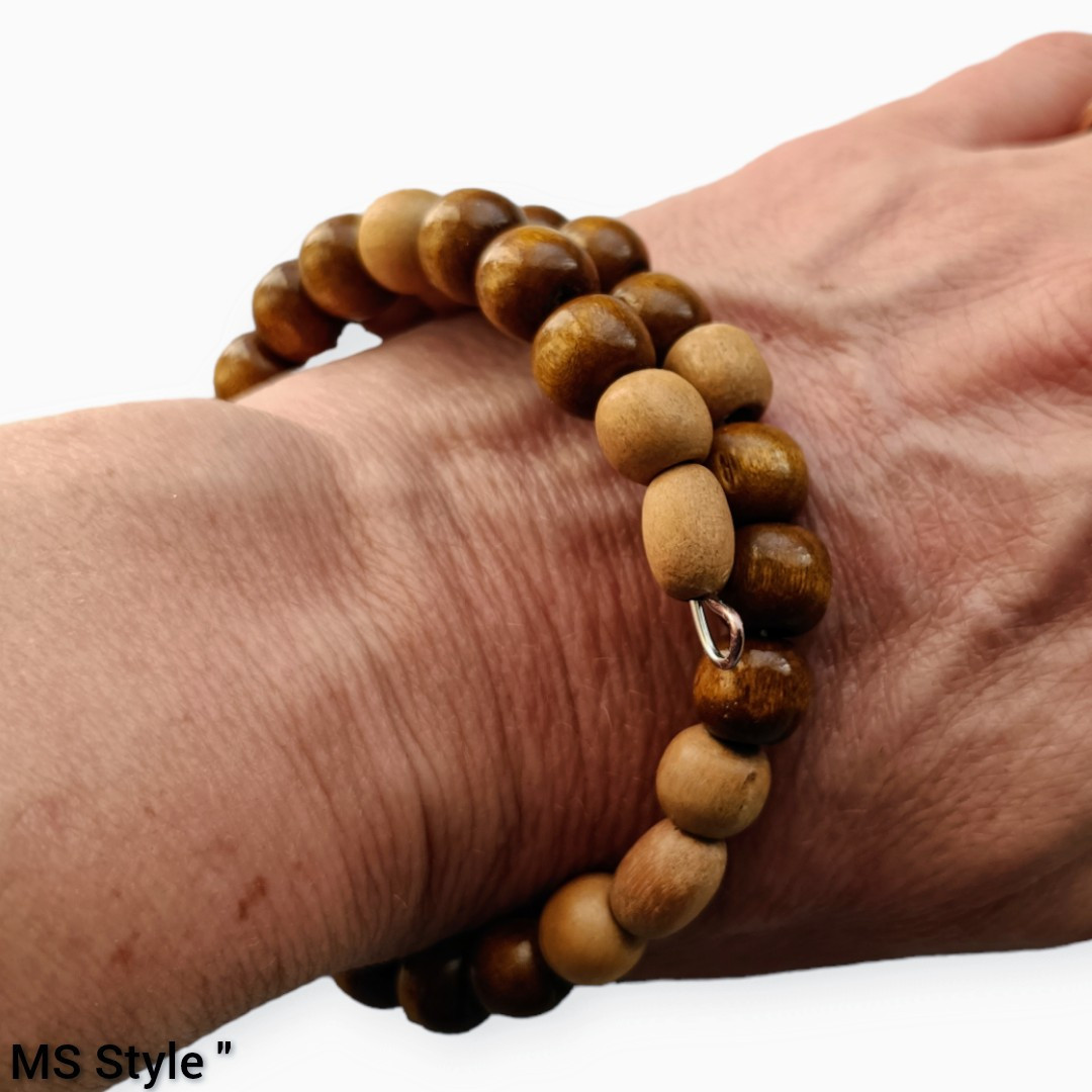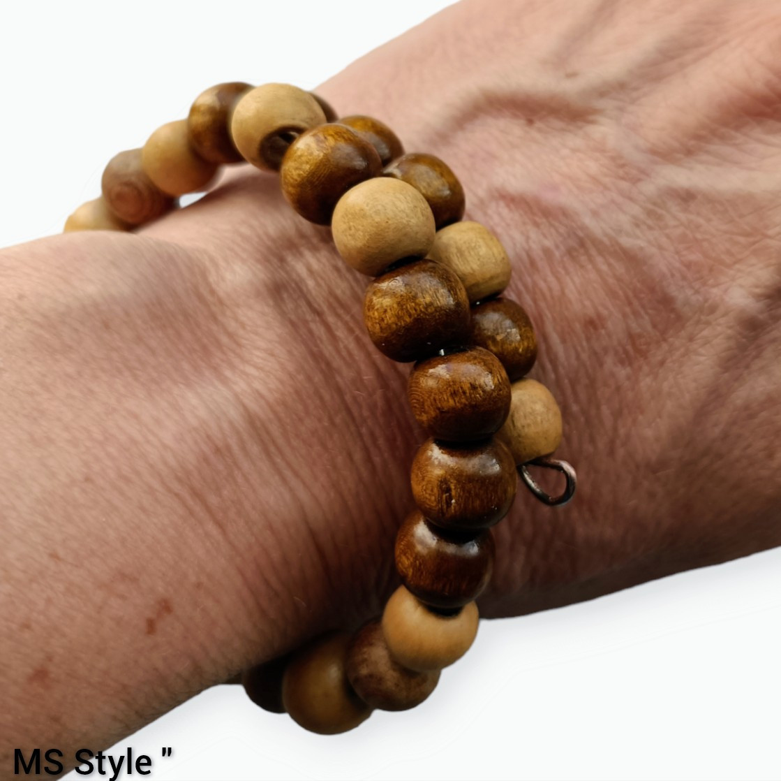 #Комплект #дамски #гривни " Комплекта е от #две #дамски #гривни, #ръчно #изработени с #дървени #мъниста с основа от навита #стоманена #тел без закопчаване, подходящи за хора с алергии, цена 22 лв, може и по отделно на цена от 12 лв за брой.
