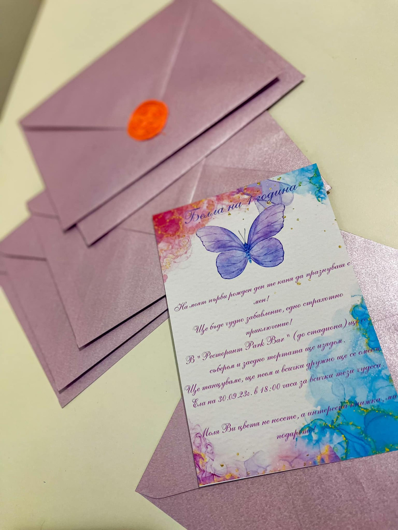 Изработка на покани за всеки повод. Дизайна и текста са изцяло по ваш избор. Цената се определя от визията на поканата.