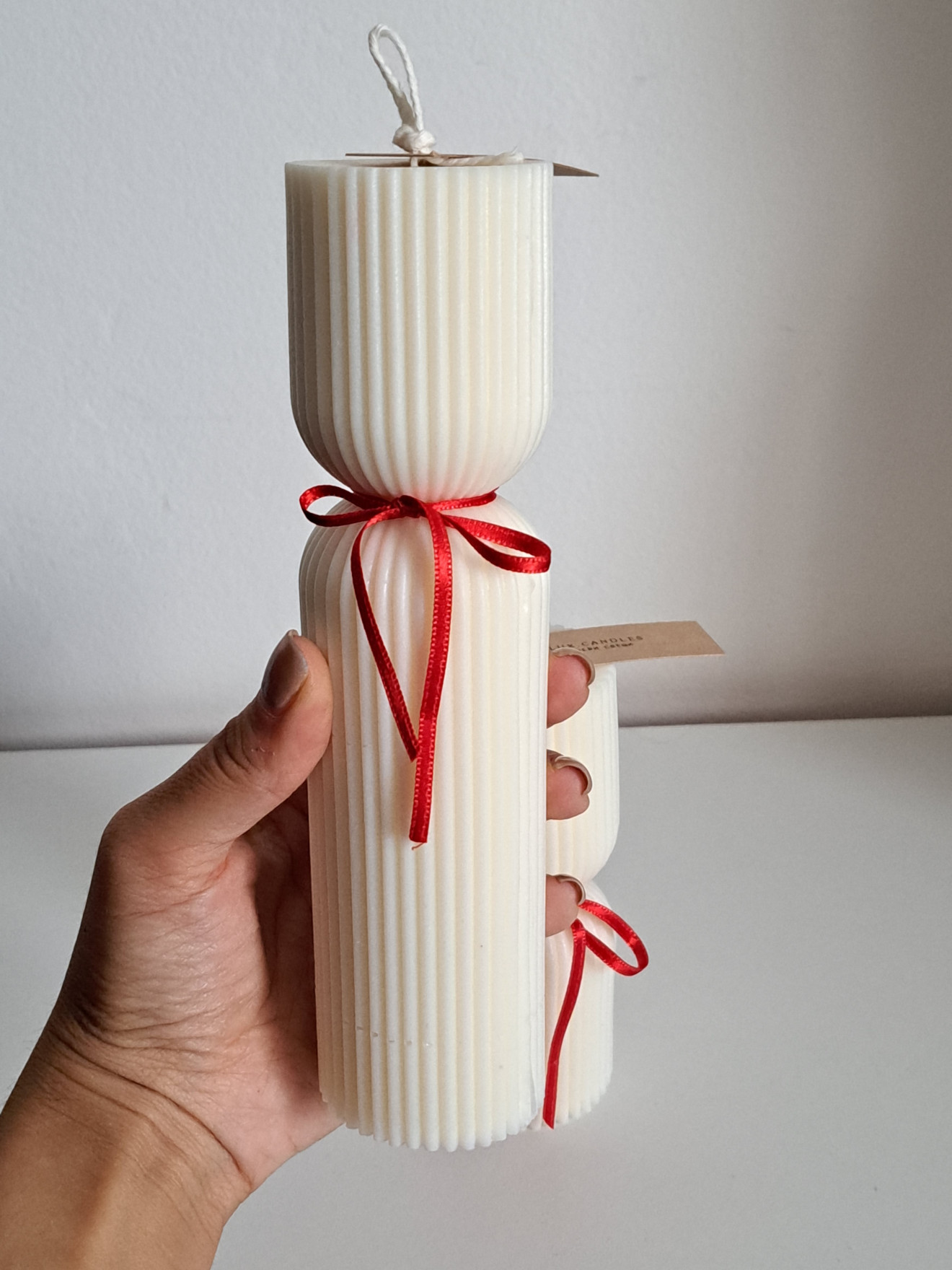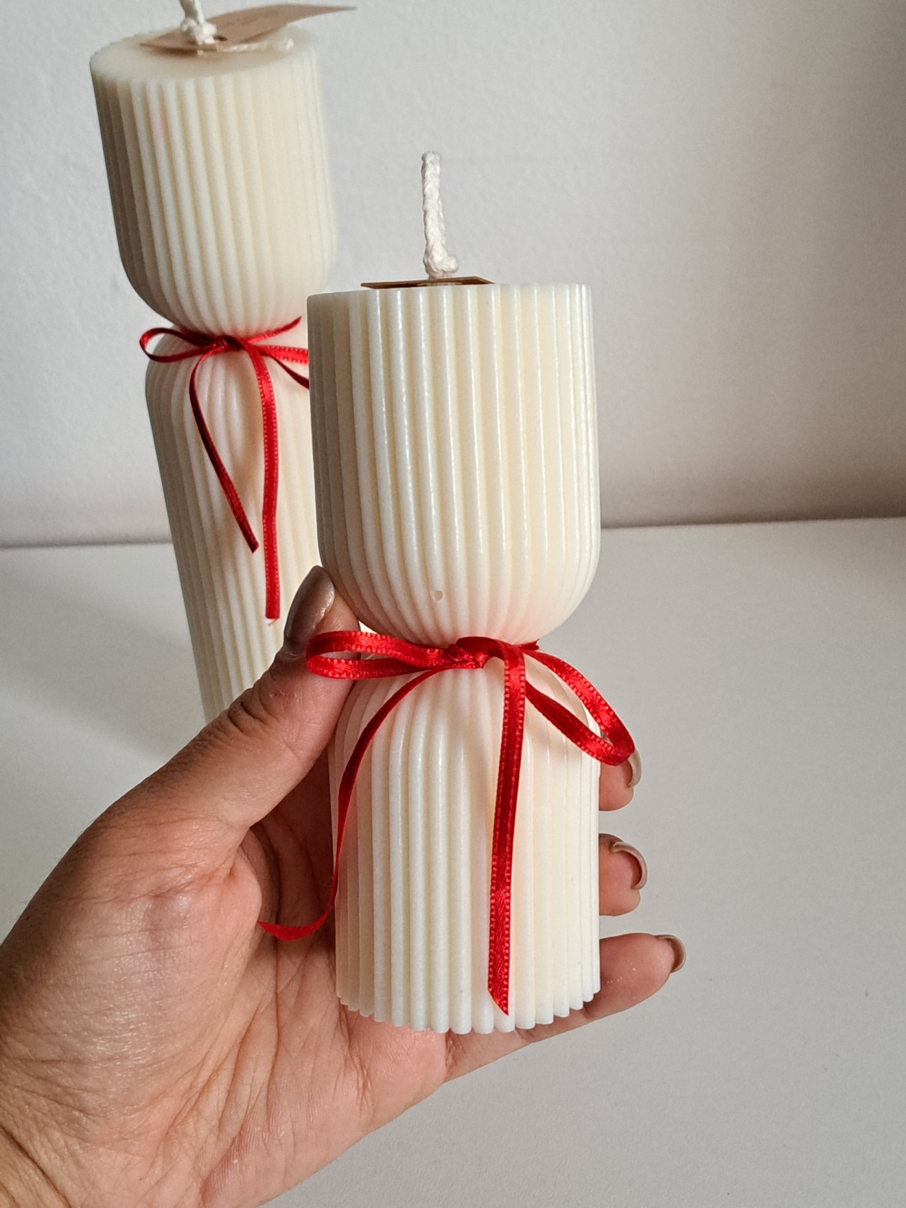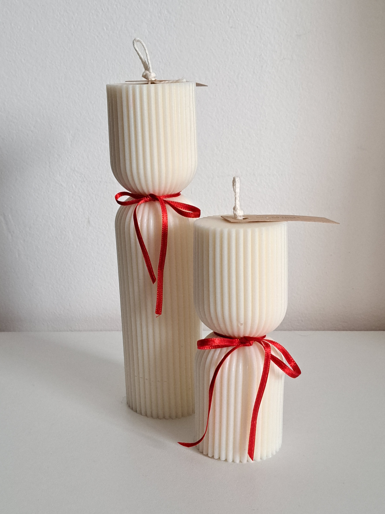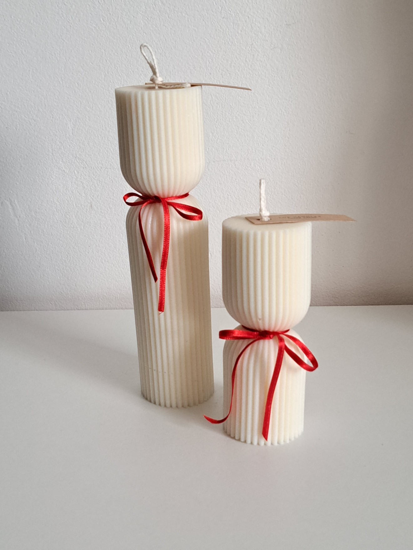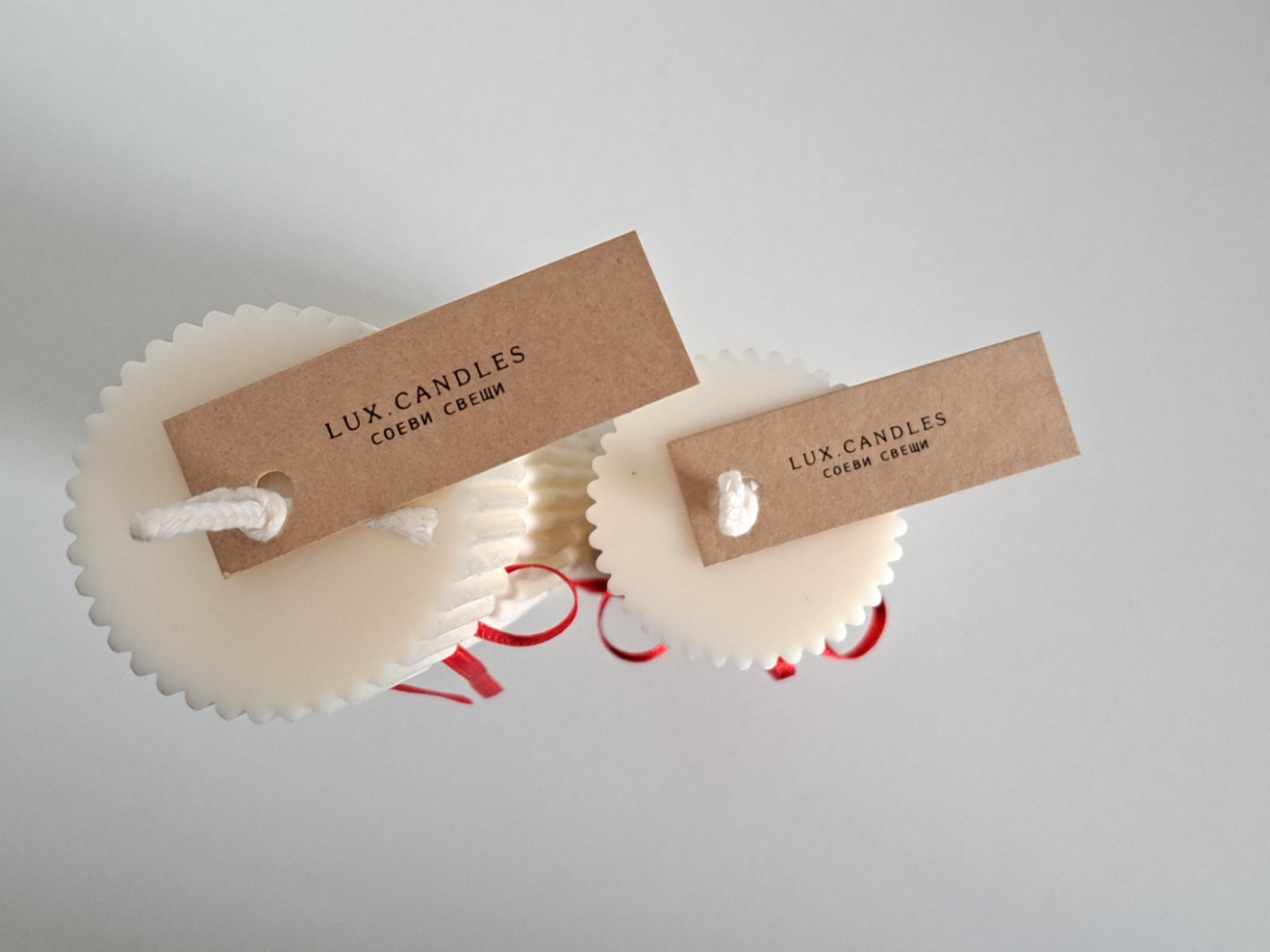 Цилиндрични соеви свещи. Изработени от натурален соев восък. С памучен фитил. Размери на голямата свещ - 20см.х5см. и тегло 300гр. Размери на малката свещ - 13см.х5см. и тегло 180гр. Предлагат се в крафт кутия, подходяща и за подарък. Цена на голямата свещ - 21лв. Цена на малката свещ - 12лв. Цена на комплект - 30лв. Не забравяйте - винаги поставяйте свещите на равна и стабилна повърхност. Използвайте свещници или специални поставки, за да предпазите повърхностите от разтопен восък. Подрязвайте фитила преди всяко палене - да не бъде по-дълъг от половин сантиметър. Избягвайте горенето на свещта повече от 3-4 часа наведнъж.
