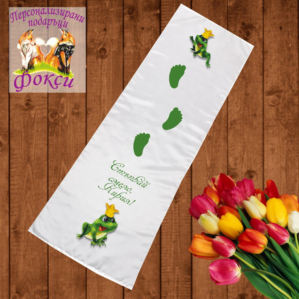 Прощъпулникът на детето е стара Българска традиция, която се практикува и до днес. Той е свързан с един важен в детското развитие момент – прохождането. Ритуалът се извършва, като на земята се постила платното за прощъпулник, питката се търкулва по него, а детето трябва да тръгне след нея и стигайки до предметите да избере един от тях. Според поверието първият предмет, който детето вземе, определя професията му. Платното за прощъпулник е изцяло персонализирано с текст пожелание, отпечатване на името на детето, любим герой и бебешки стъпки. При ваше желание може да се добави и датата на прощъпулника, като това няма да оскъпи продукта. Изработено е от плътен, непрозрачен, матов плат фин микрофибър,в бял цвят /100% полиестер/, с размери 50 х 150 см. Не се пързаля! Използва се директен печат /не се използват лепенки и стикери/. По този начин се елиминира възможността изображенията да се отмият или отлепят при пране или гладене. Цветовете са ярки, наситени и дълготрайни. 0878827475 www.foxy-wed.com