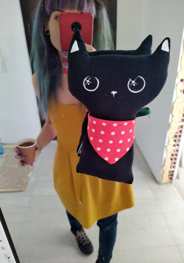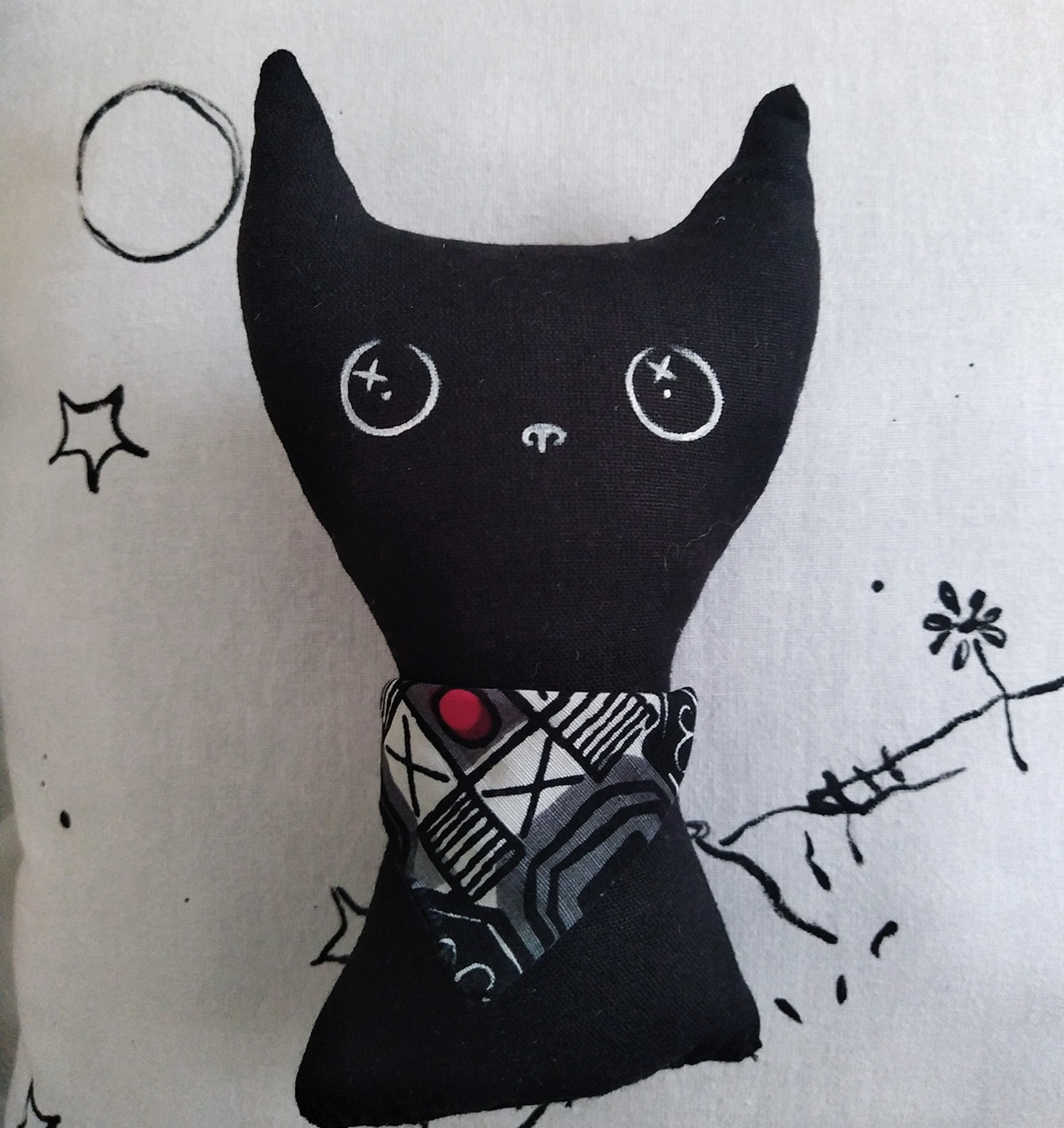 текстилна играчка коте ръчно рисувана и ушита (памучни платове,вата)