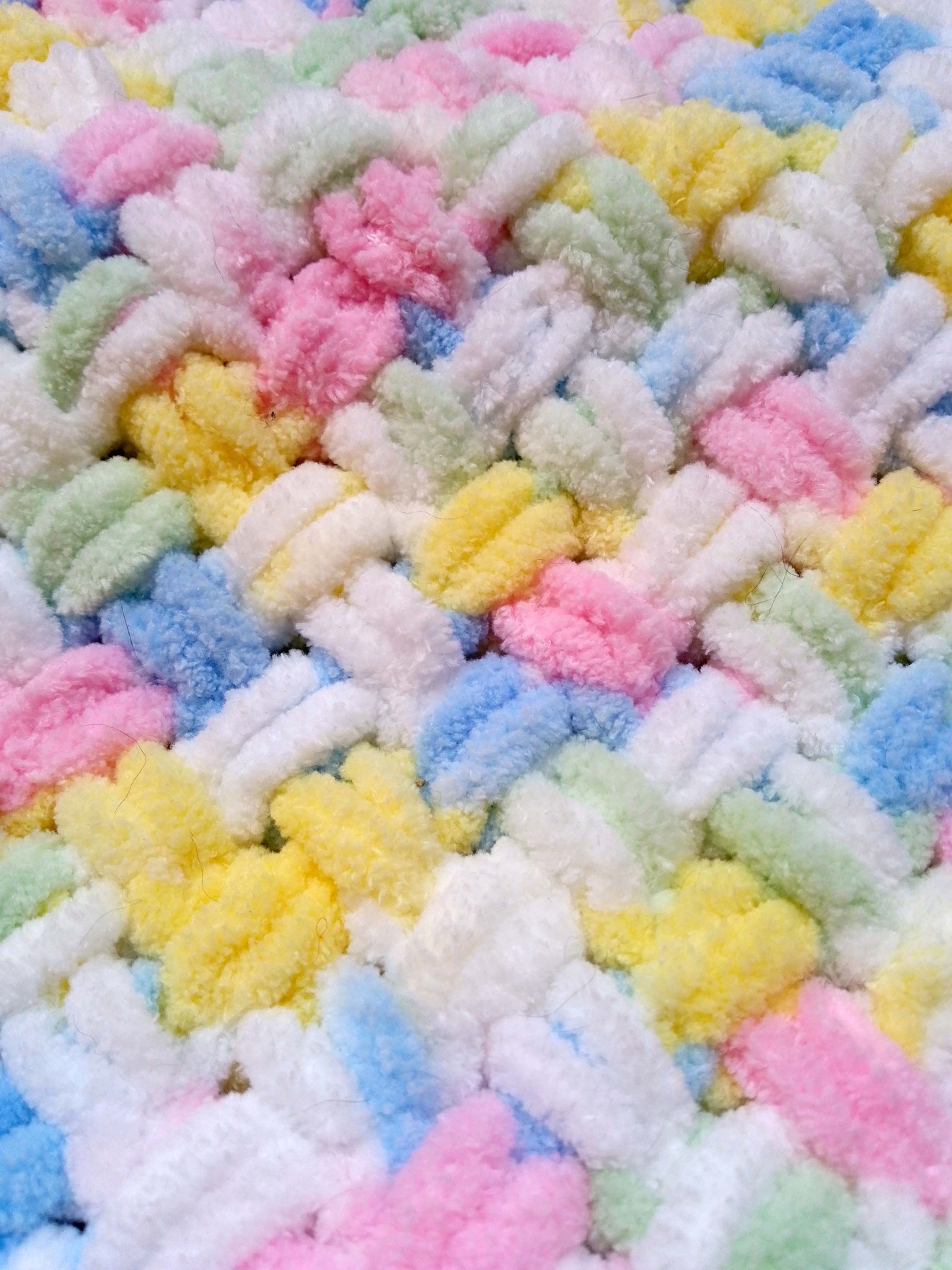 • Ръчно плетени за Вашето Бебе • Изработен от 100% микро полиестер • Размер 90/90см • Цвят - многоцветен (дъга) • Прежда- Ализе Пуфи • Хипоалергичен, антибактериален и мек на допир • Ако имате някакви въпроси моля, не се притеснявайте да се свържете с нас. Нежност и Комфорт за Вашия Малчуган - Ръчно изработена Пухкава Бебешка Пелена! Направете Вашето Бебе Щастливо: С ръчно изработената пухкава бебешка пелена ще осигурите на Вашето бебе не само комфорт, но и безкрайно много усмивки. Предложете му най-доброто, предложете му нашите бебешки пелени. внимание! Истинският цвят може да е малко по-различен на екрана поради настройките на монитора. Как да се грижа? •За машинно пране: можете да го перете в топла вода при 30°C/86°F деликатен цикъл и също да го изсушите на слаба температура. •За да избегнете разтягане е желателно да го сушите в хоризонтално положение. С любов и топлина, екипът на Creative Corner SZ – Ръчно Плетени Чудеса