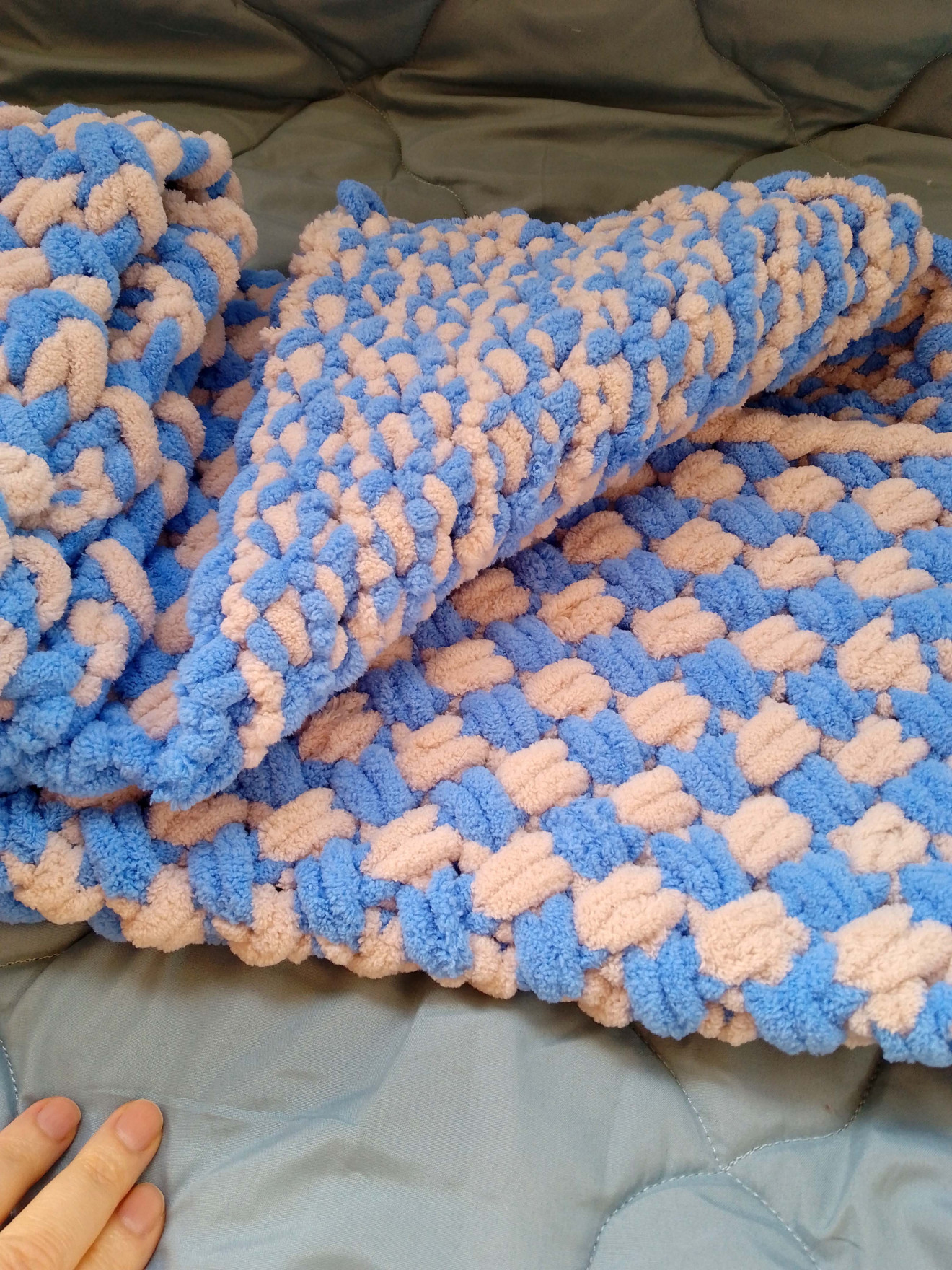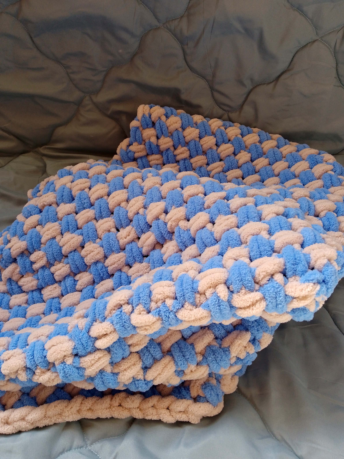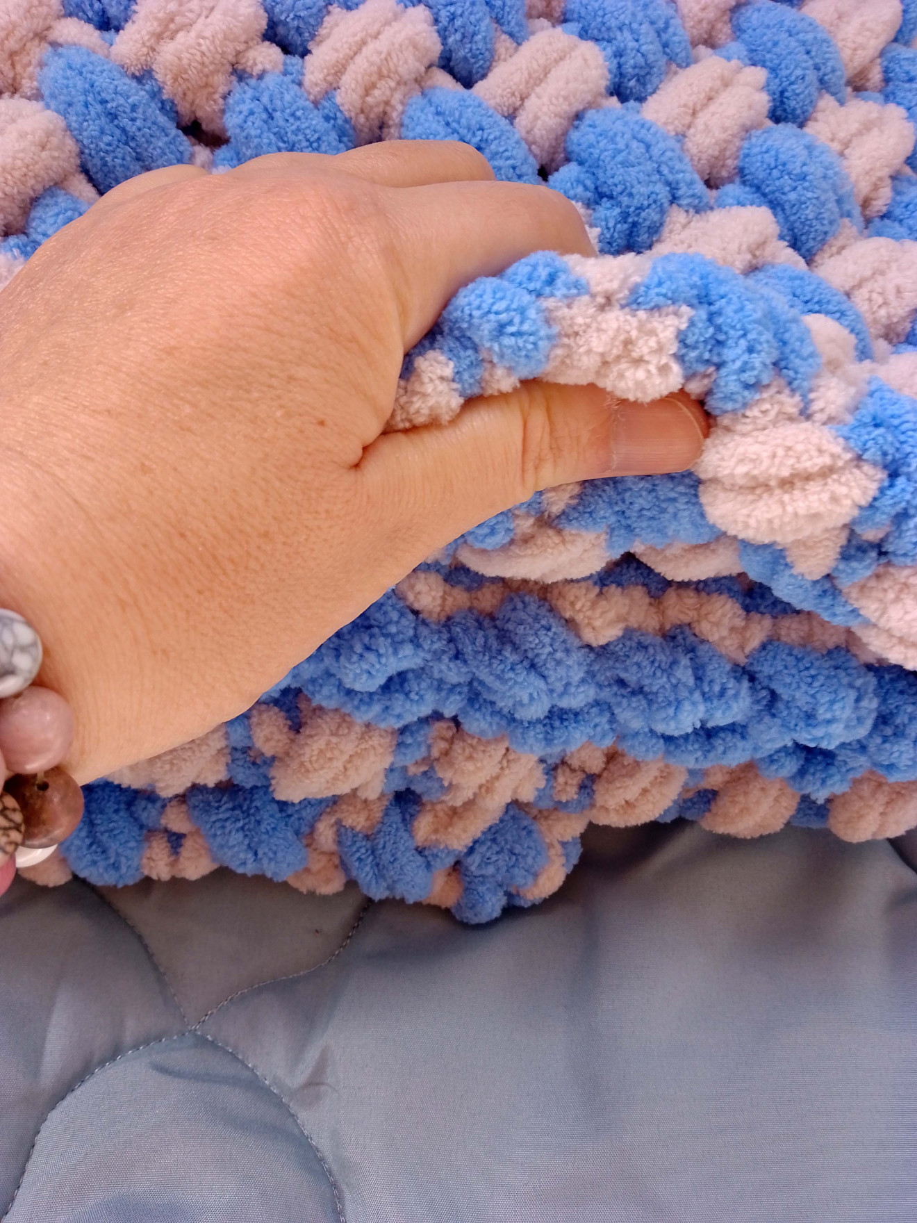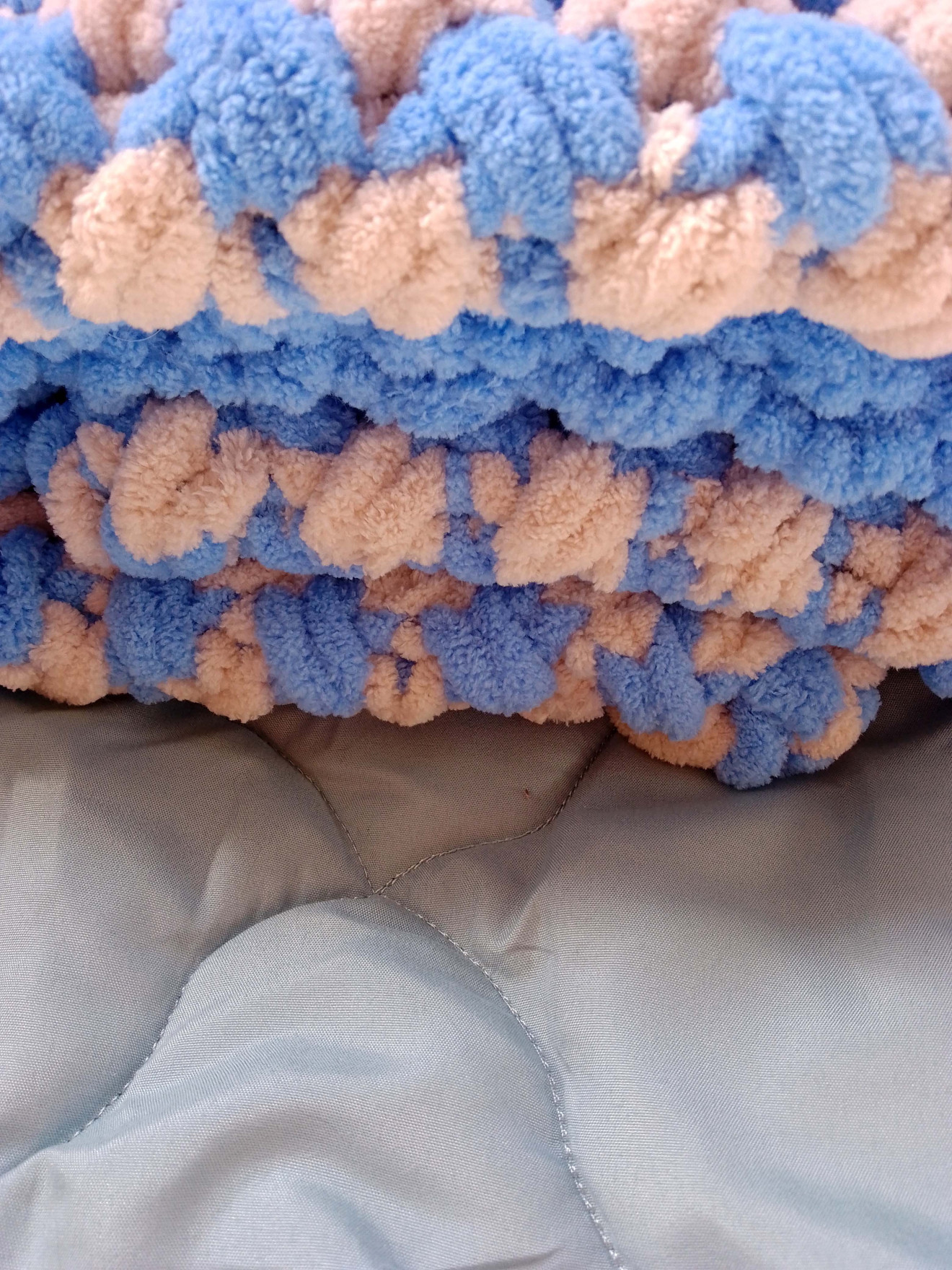 • Ръчно плетени за Вашето Бебе • Изработен от 100% микро полиестер • Размер 90/85см • Цвят - двуцветен (медено и синьо) • Прежда- Ализе Пуфи • Хипоалергичен, антибактериален и мек на допир • Ако имате някакви въпроси моля, не се притеснявайте да се свържете с нас. Нежност и Комфорт за Вашия Малчуган - Ръчно изработена Пухкава Бебешка Пелена! Направете Вашето Бебе Щастливо: С ръчно изработената пухкава бебешка пелена ще осигурите на Вашето бебе не само комфорт, но и безкрайно много усмивки. Предложете му най-доброто, предложете му нашите бебешки пелени. внимание! Истинският цвят може да е малко по-различен на екрана поради настройките на монитора. Как да се грижа? •За машинно пране: можете да го перете в топла вода при 30°C/86°F деликатен цикъл и също да го изсушите на слаба температура. •За да избегнете разтягане е желателно да го сушите в хоризонтално положение. С любов и топлина - Ръчно Плетени Чудеса