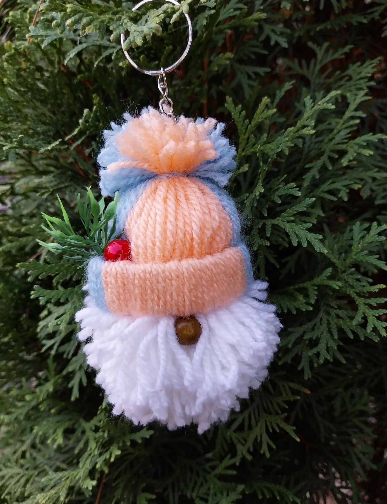 Ключодържател под формата на гномче.Изработен от прежда и много любов.Подходящ аксесоар както за малки,така и за пораснали вече деца. Подаръче което би усмихнало денят ви. Височина на гномче:11см. Ширина:7см.