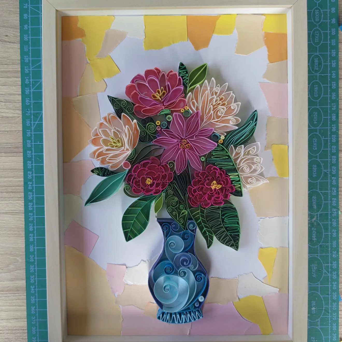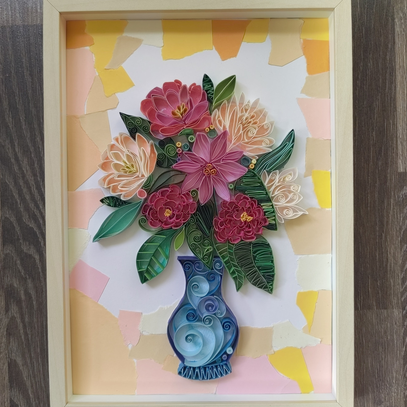 Цветен букет създаден с техника квилинг. Подходящ подарък за различни поводи.