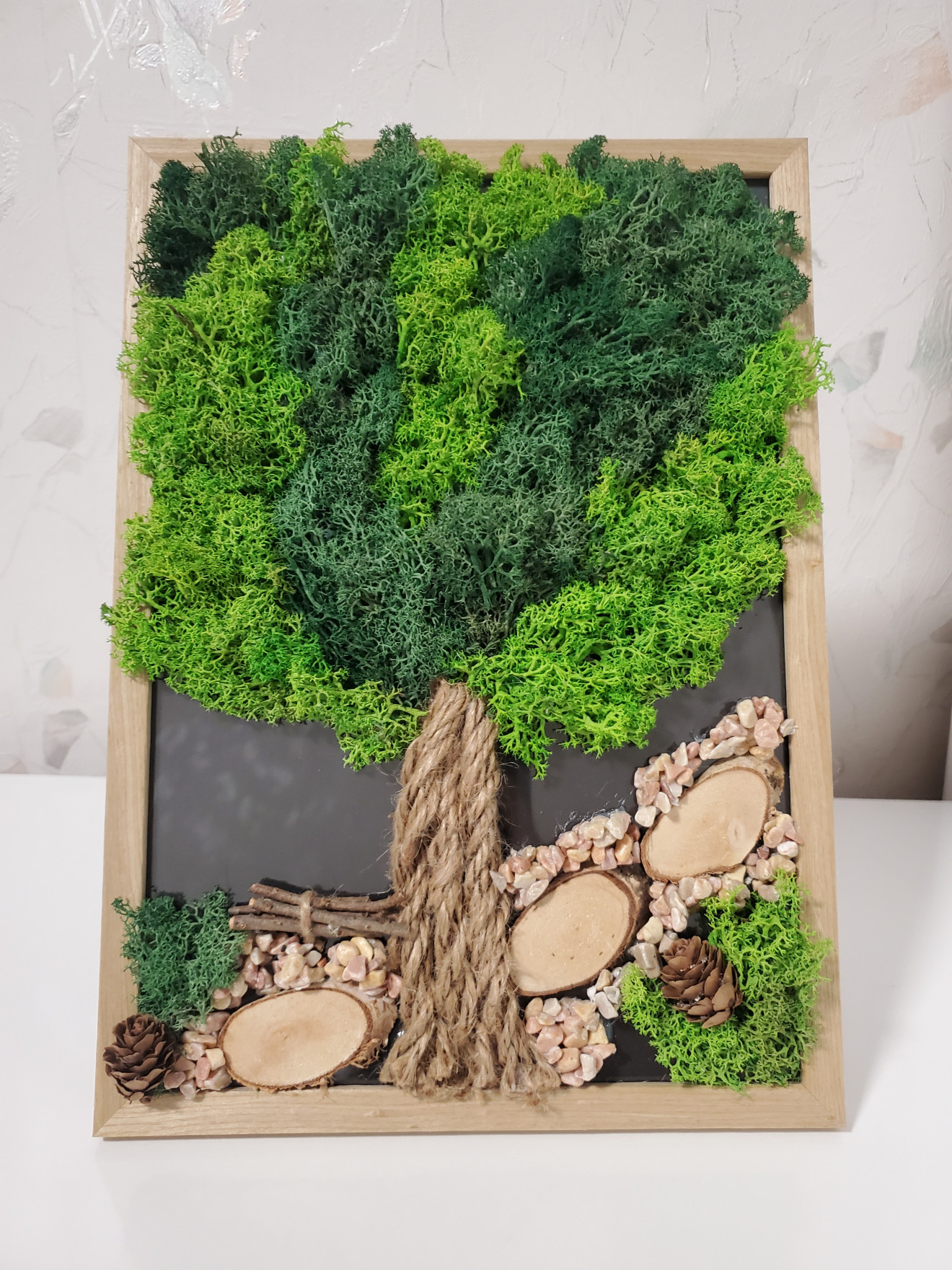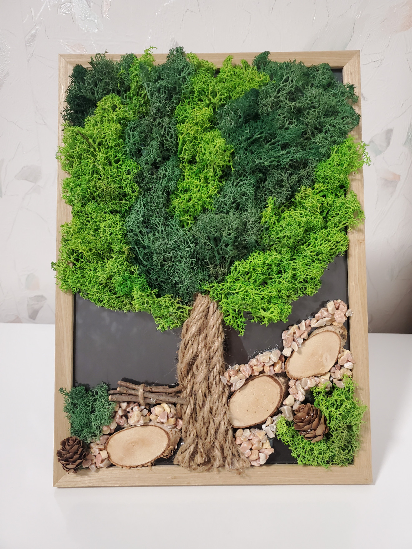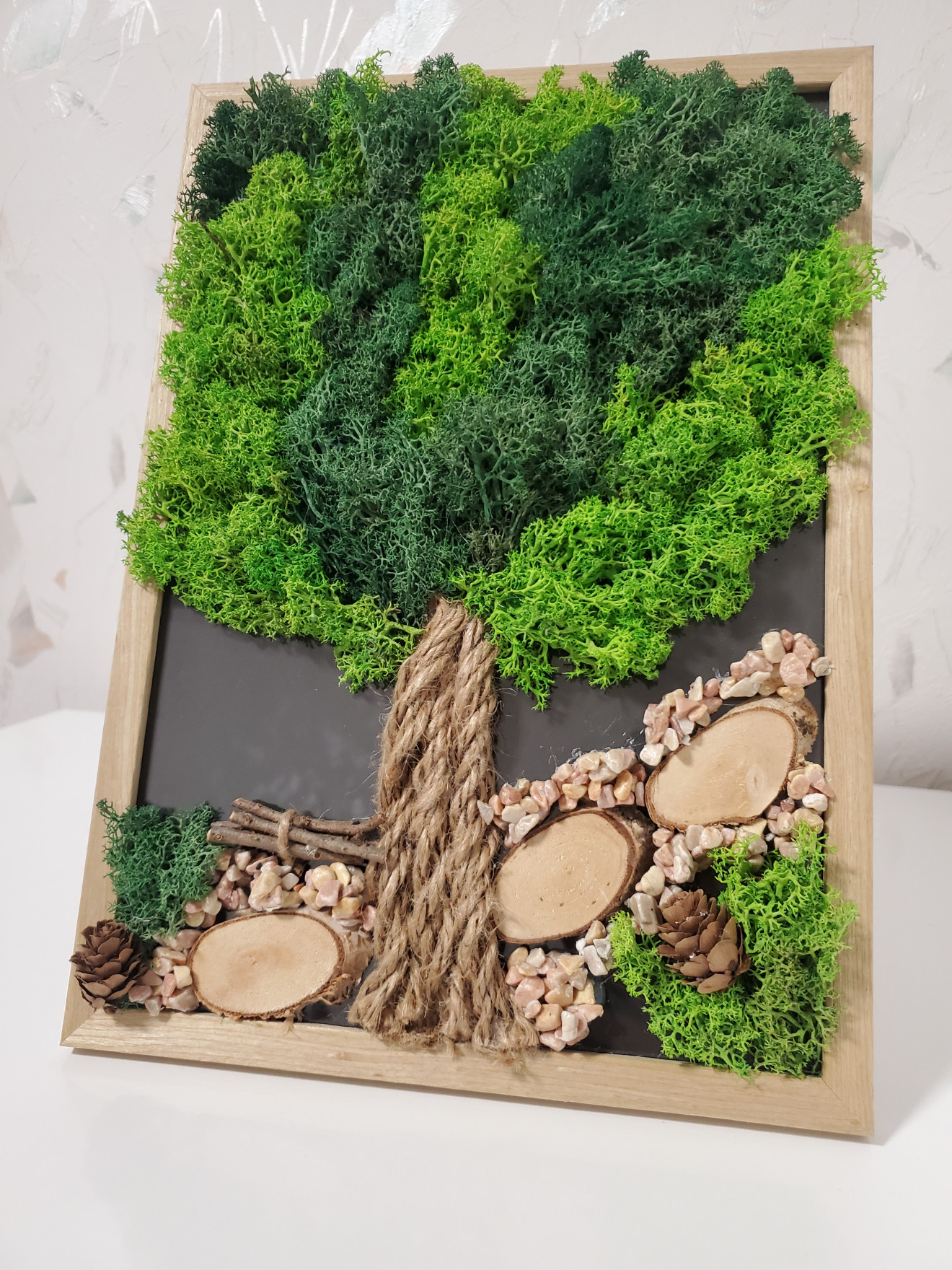 Рамка, тип пано с дървото на живота, изработено със скандинавски мъх, камъчета, природни материали. Размер А4, 21/30см #картина #рамка #скандинавскимъх #живакартина #дърво #дървонаживота #подарък #оригинален #рожденден #юбилей #именден #взнакнаблагодарност