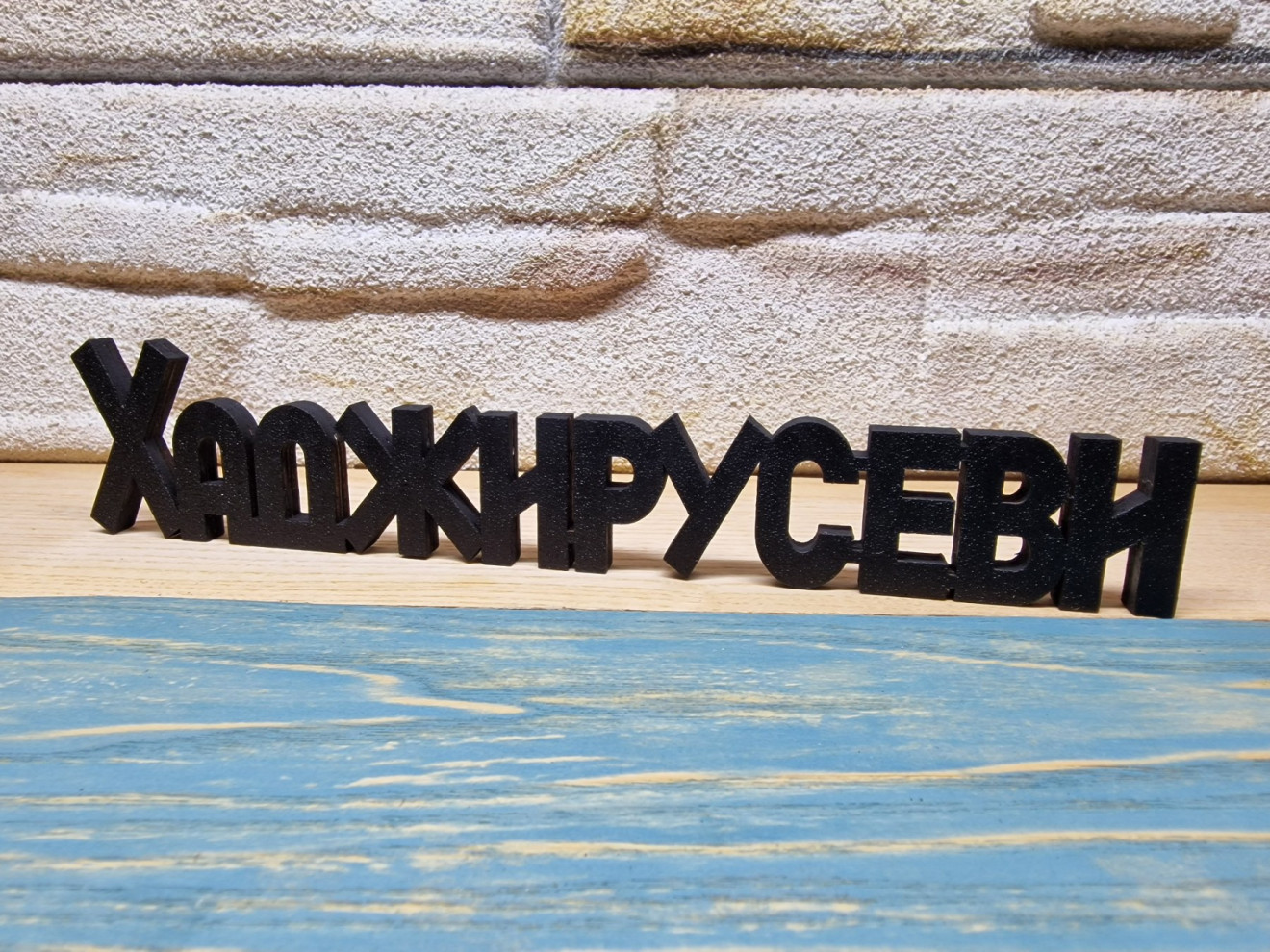 Надпис / табелка с фамилно име за врата по поръчка на клиент. Предлагаме изработка на персонализирани табели по наш проект, или ваша идея, с текст, орнаменти, размери и цветове по поръчка. Можем да изработим за вас персонализирани табелки за входна врата, пощенска кутия, офис, врата на стая, декорация, за веранда, градина, забавни и смешни табелки, подходящи за ресторанти , заведения , бирария и всичко, което пожелаете! Можете да зададете конкретен проект, който ние да изпълним специално за Вас! Чудесен специален подарък за вас, или за любими хора! Размери: Дължина: до 20 сантиметра ?Ние от Ovech HandMade отделяме огромно внимание и любов към всяка поръчка. ❤️ Можете да разгледате Facebook страничката ни: Ovech HandMade ❤️ ?В нашата работилничка можем да изработим за вас: ✅Надписи за детска стая ✅Табелка за детска стая или рожден ден ✅Свещници уникати ✅Стойки за вино , стойки за вино и чаши ✅Подложки за чаши за: вино , бира , чай , кафе ✅Табели и лого на футболни отбори ✅Табелка с номер за врата ✅Забавни и смешни табелки подходящи за ресторанти , заведения , бирария ✅Табела по желание и идея на клиента ✅С ваш текст , орнаменти , размери и цветове по поръчка. ✅Табела за врата ✅Табела за веранда ✅Табела за градина ✅Табела за барбекю ✅Табела за библиотека / рафт ✅Можете да зададете и конкретен проект който ние да направим специално за вас