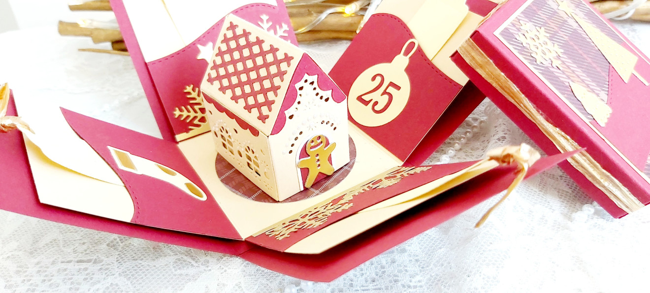 3D коледна картичка експлодираща кутийка със светеща къщичка