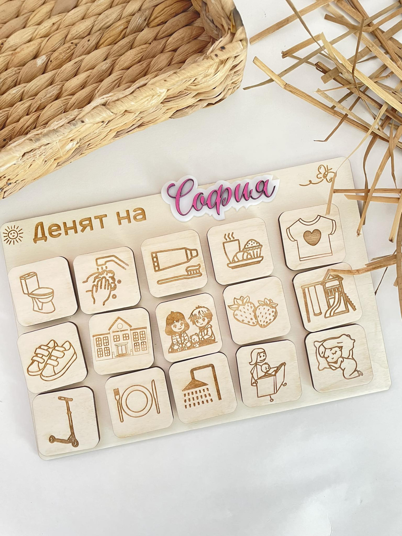 Персонализирано табло със задачи за деца е инструмент, който помага на децата да се организират и привикнат към определена програма или редица задължения през целия ден. Това табло може да бъде полезно за родителите, които искат да насърчат навиците на децата като постоянство, отговорност и самостоятелност. Таблото на успеха е с магнитчета за по-лесна игра на децата. Размери на таблото : 30/21 см. Размери на квадратчетата : 5/5 см. (15 бр.) За гр. Врана - възможност за взимане от адрес.