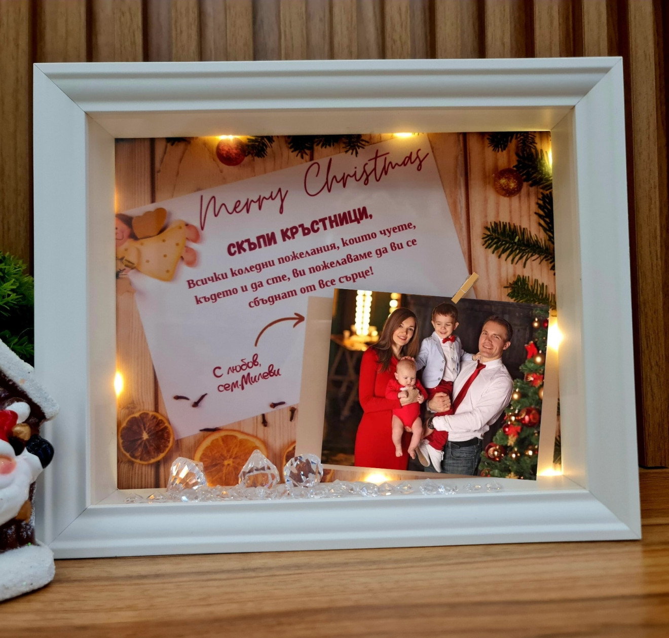 Коледен модел,светеща 3д рамка със снимка и пожелание по Ваш избор.?? ☃️Рамката може също да бъде изработена и в по-бюджетен вариант ,в обикновена рамка.☃️ Може да ми пишете или звъннете на вайбър 0877434509