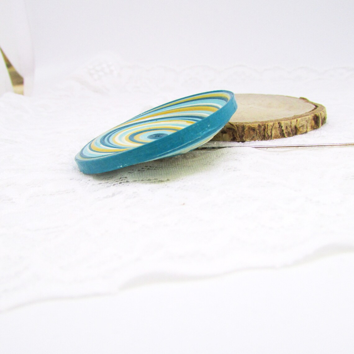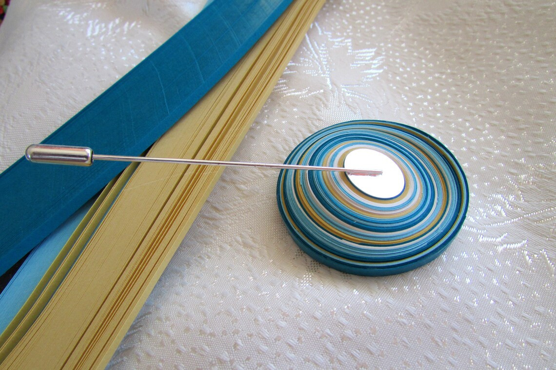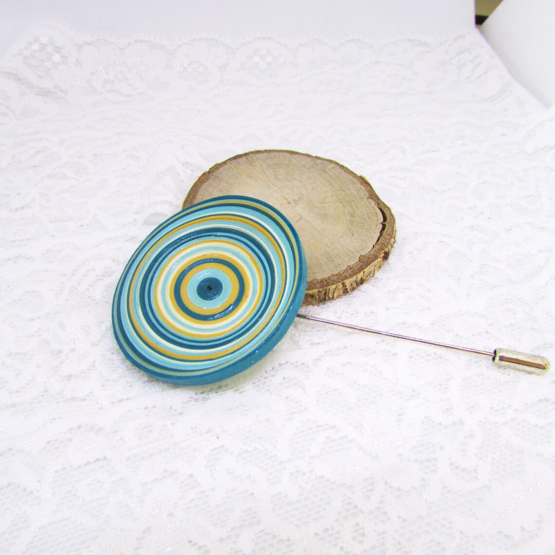 Ако харесвате нестандартни, но стилни аксесоари, или търсите интересно бижу за подарък, тази брошка за шал е точно за вас - изработена е от навити квилинг ленти 3 мм. Повърхността на брошката е неравномерно извита. Закопчава се с дълга игла. Отгоре е нанесен водоустройчив акрилен лак, който прави бижуто изключително устройчиво, но все пак не го мокрете (много) с вода! Диаметър: 4,5 см Обща дължина: 10 см Изпраща се с подаръчна кутийка.