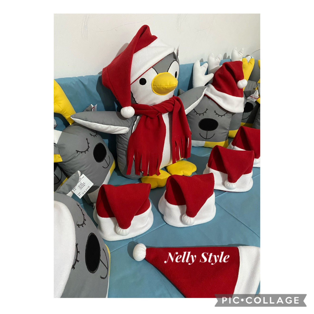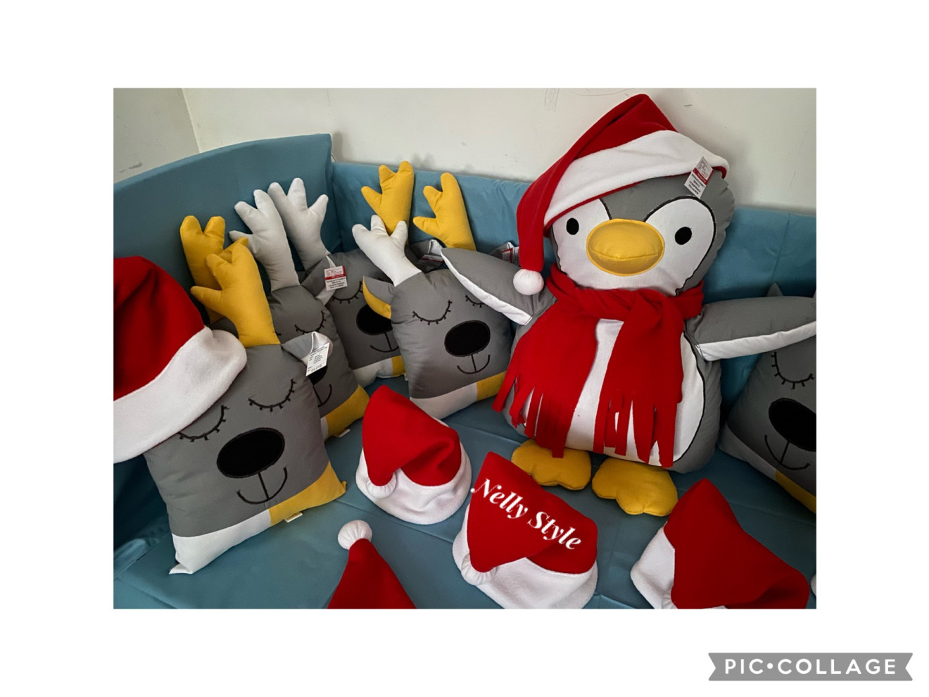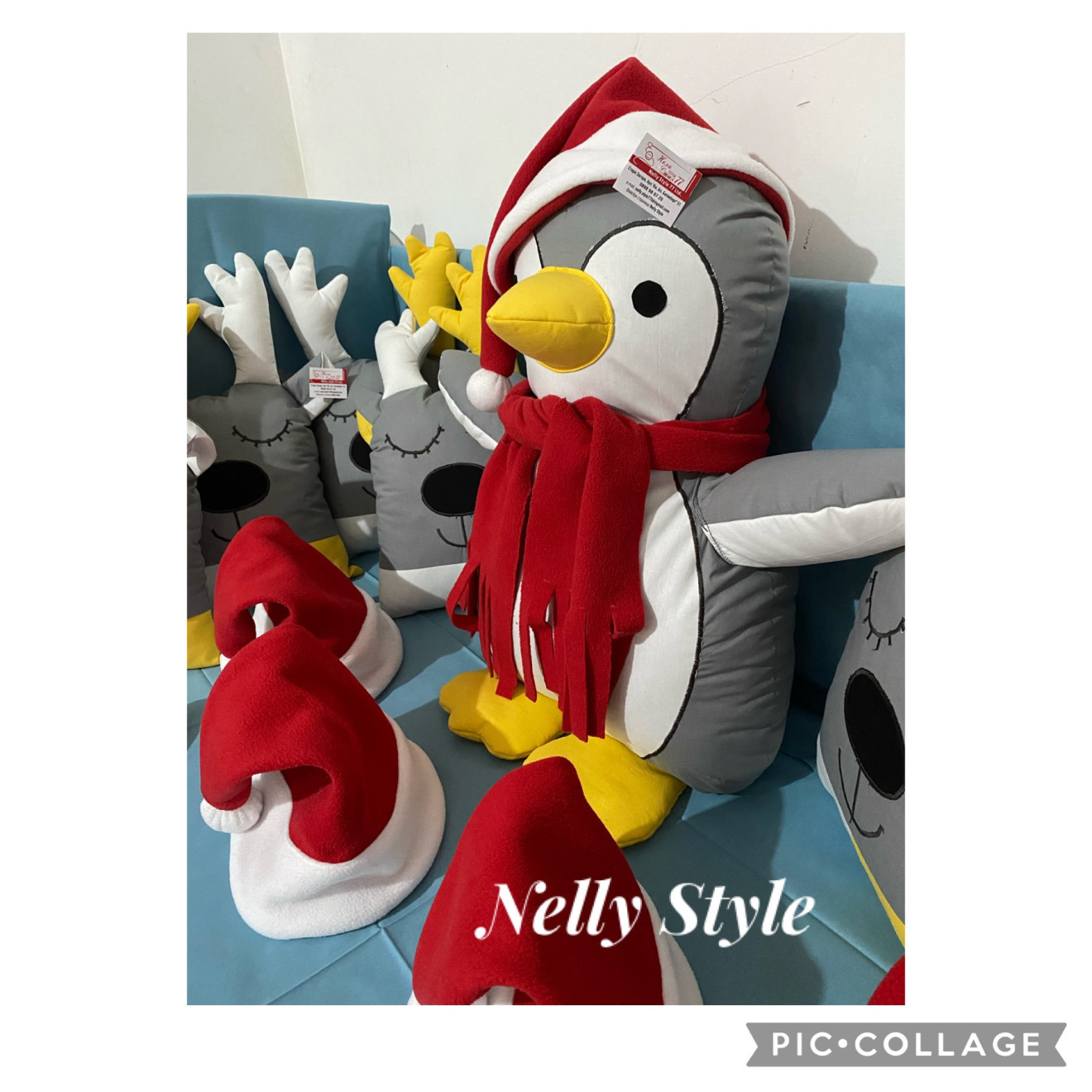 Коледен пингвин със шапка и шал. Изработен от 100% П ранфорс Пълнежа е силиконов Пух Пингвина е направен със сваляем калъф,за лесно пране. Висок 60 см. Широк 40 см. С ръцете 70 см. Цена: 120 лв.