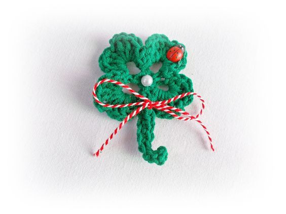 Плетена мартеничка тип брошка - детелинка. Диаметър - около 5 см. Цената е за 1 брой.