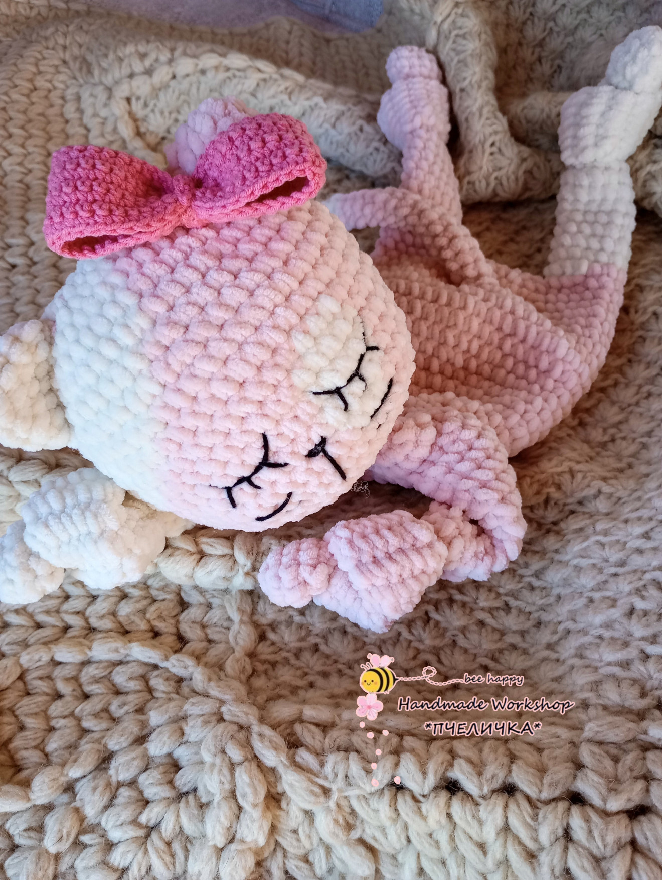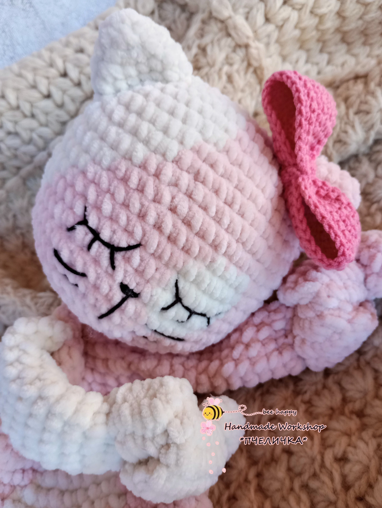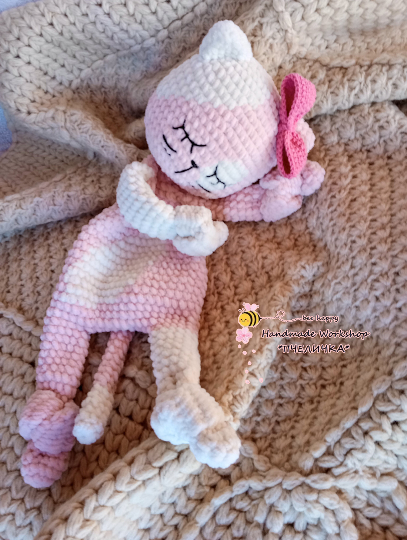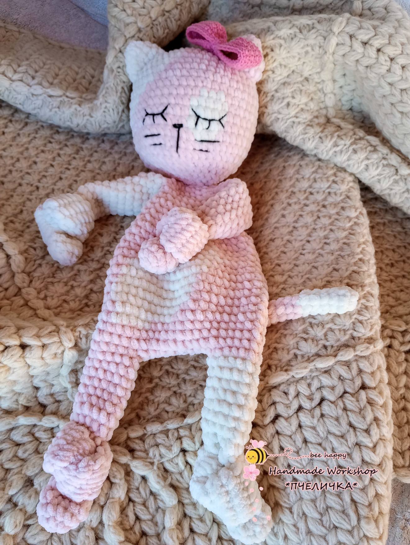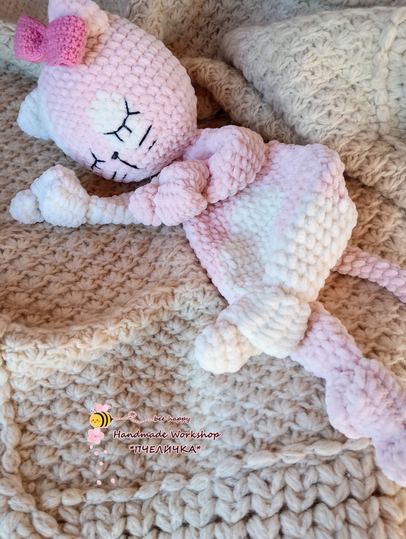 Маца е много гальовна и търси своето другарче! Изплетена от мека, плюшена прежда, тя е почти 70см. висока!