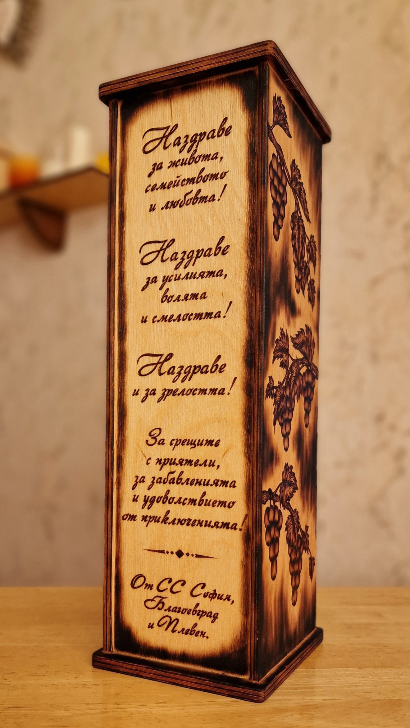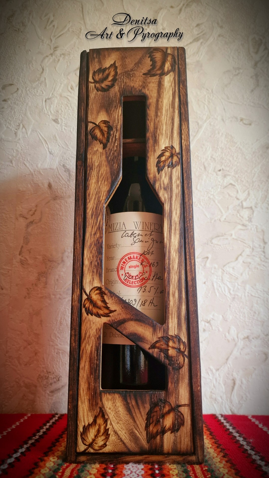 Кутиите се изработват по поръчка с текст и мотиви по Ваш избор. Цените варират в зависимост от проекта. Времето за изработка зависи от заетоста ми към момента на поръчване. FACEBOOK - DenitsaArt & Pyrography/Ръчно гравиране върху дърво 0879/555-061 - активен Вайбър Тагове: #кутия #бутилка #вино #подарък #повод #юбилей #рожденден #именден #ръчно #гравирана #пирография #pyrography #woodburning #handmade #art