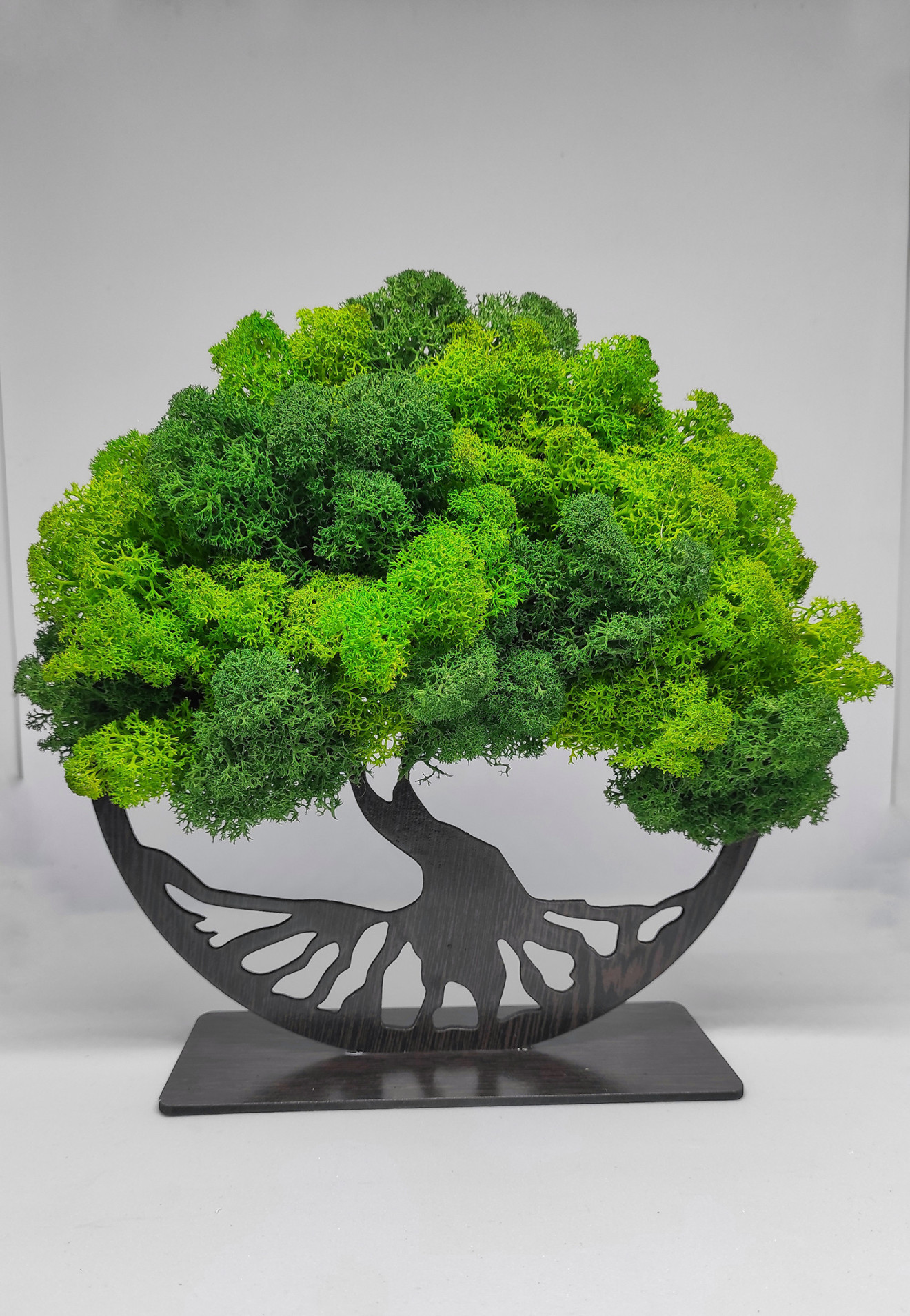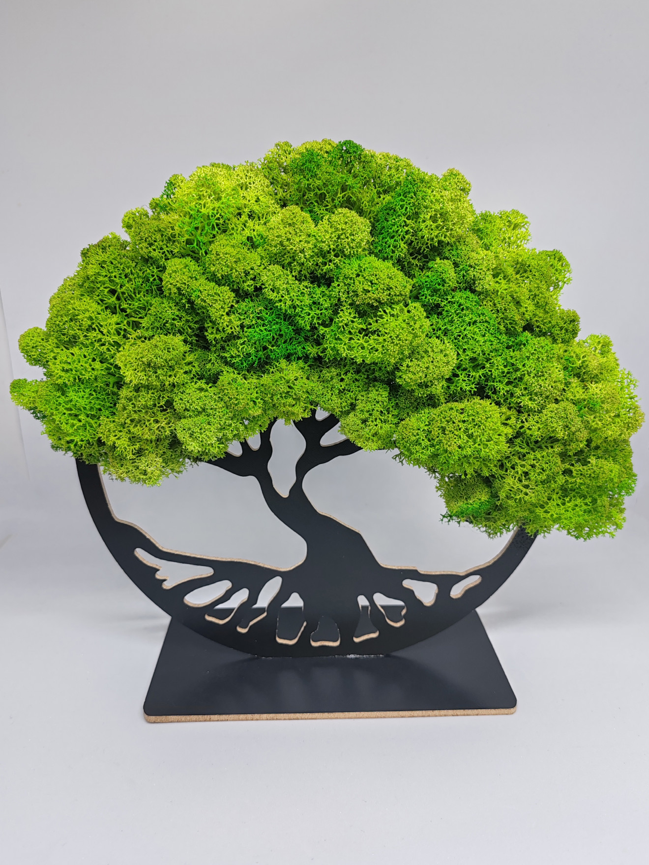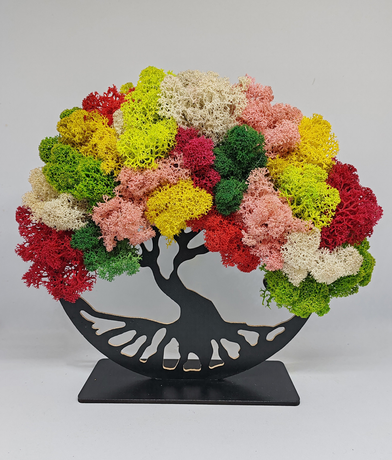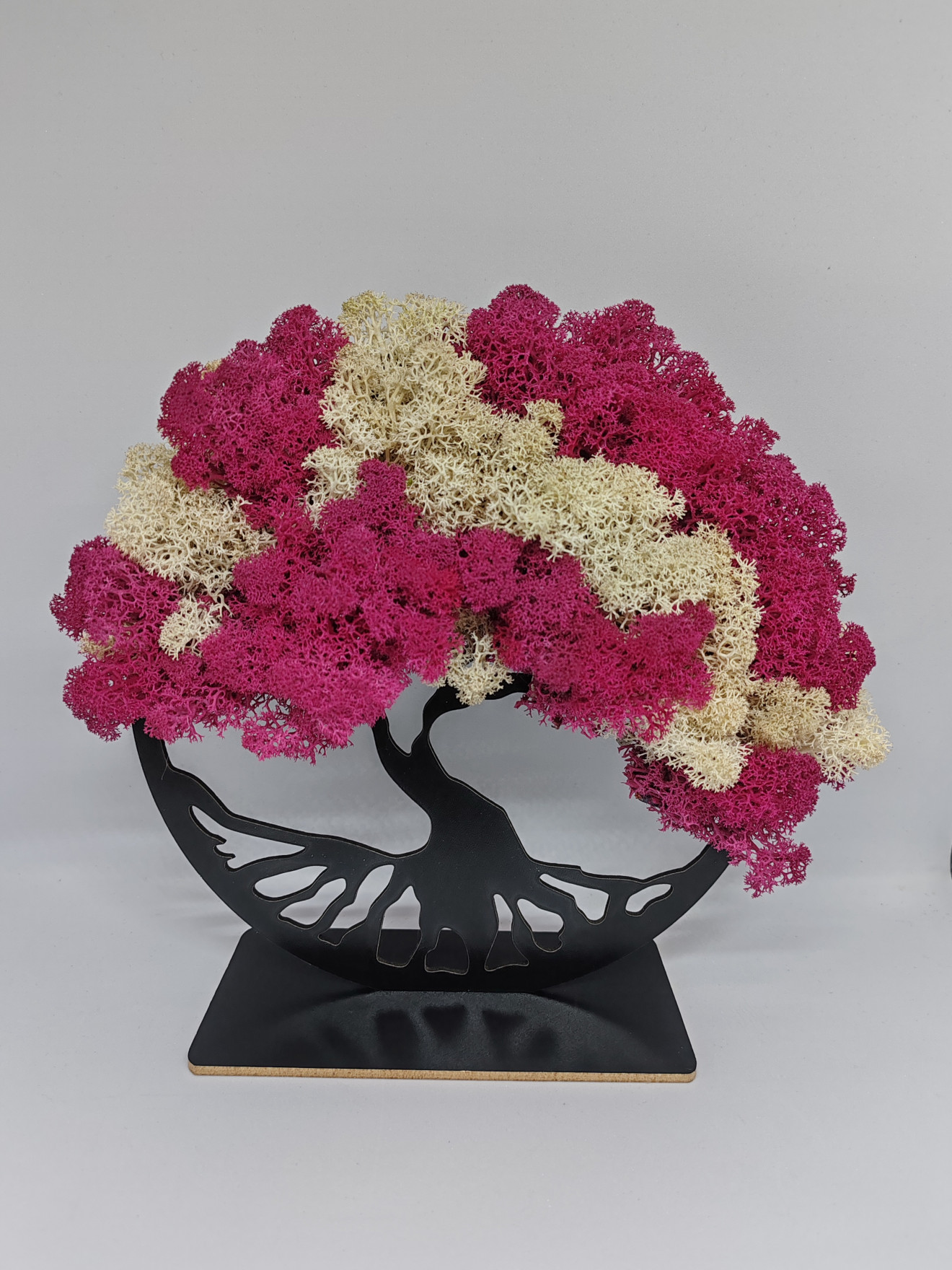 "Подарък декорация - Дървото на живота със скандинавски мъх" е уникална декорация със скандинавски мъх, която превръща древния символ на живота в елегантен и стилен подарък. Тази декорация съчетава красотата на дървото на живота с изискаността на скандинавския мъх, предоставяйки несравнима атмосфера на естетика и хармония. Дървото на живота е внимателно декорирано в два цвята скандинавски мъъх - розов и бял, които създават нежен и изтънчен контраст. То е символ на вечността, живота и връзката между небето и земята. Размер: 21см.диаметър