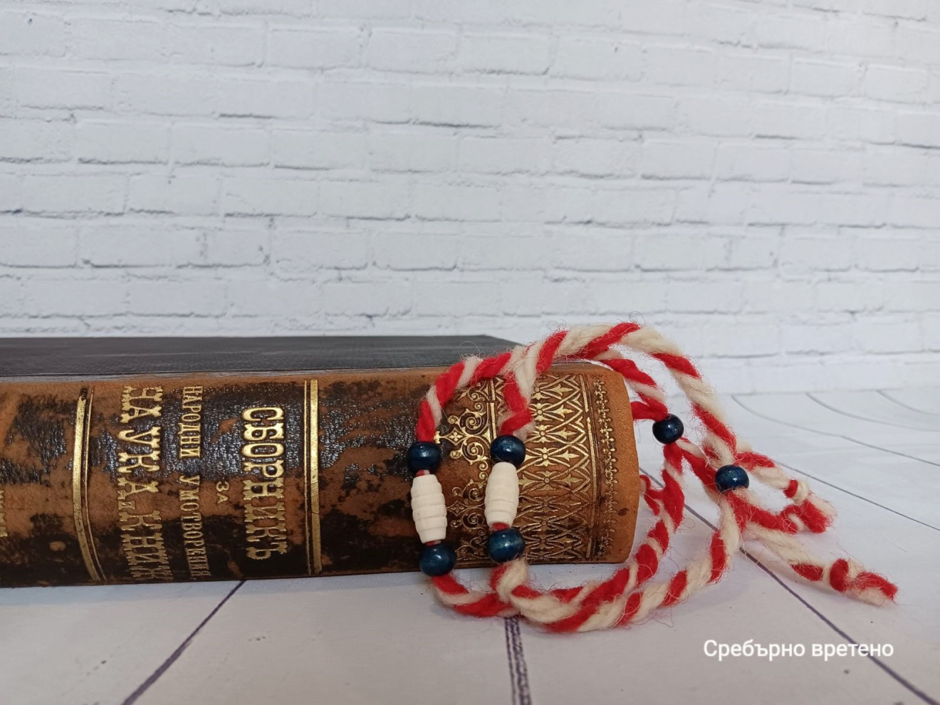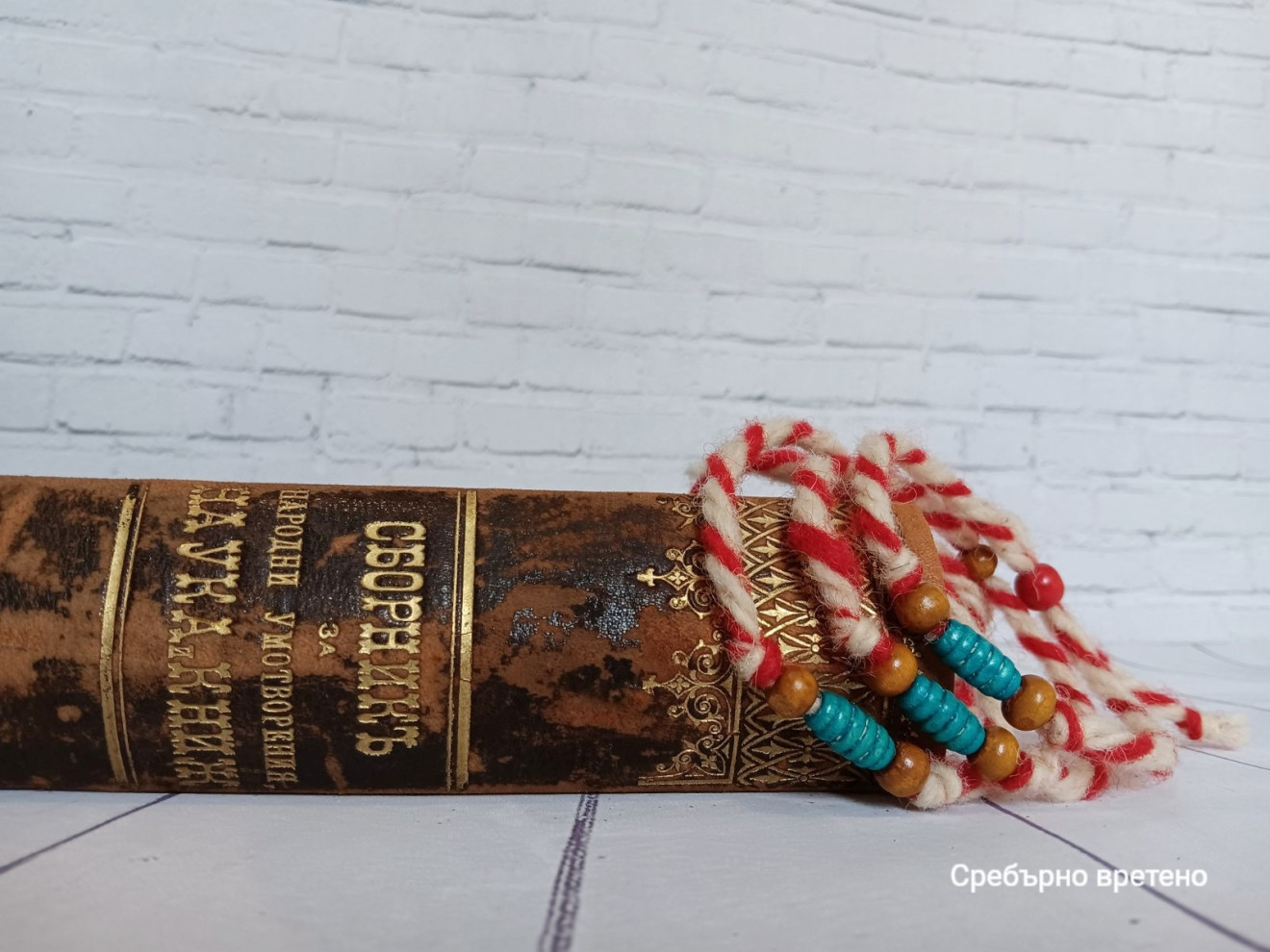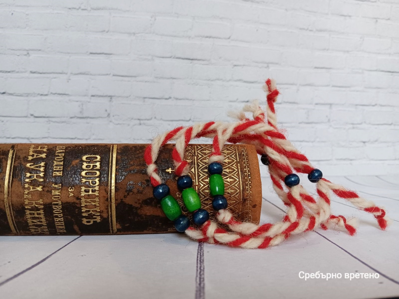 Мъжка мартеница-гривна „Традиция и съвремие“ от плътна вълна и дървена украса Идеални за забързания ритъм на работния ден или ежедневието на роднини, приятели и колеги. Сръчно направени от вълнени бели и червени нишки, защото вълната е присъствала в традиционната мартеница като пожелание за здраве, дълъг и щастлив живот. За разкош сме добавили дървени мъниста. Поставят се лесно и се придържат към китката на ръката чрез стопер. Топчета-стопери регулират обиколката на гривните според нужния размер. Нишки 40 см, предвидени за по-нежни дамски и за по-големи мъжки китки на ръцете. Наречени за здраве, благодат, късмет и берекет. Грижливо опаковани с авторски етикет и кратко описание на първомартенски ритуал. Налични 3 модела. Пишете ни! Готови сме да Ви помогнем. Ние ще се свържем с Вас, за да уточним заявката Ви. Доставка 1-2 работни дни с преглед преди плащане. Последвайте Сребърно вретено във Facebook, за да научавате за намаления и нови изделия. Разгледайте албума с мартенички. Налични са дизайнерски и нискобюджетни модели за всеки пол, възраст и повод.