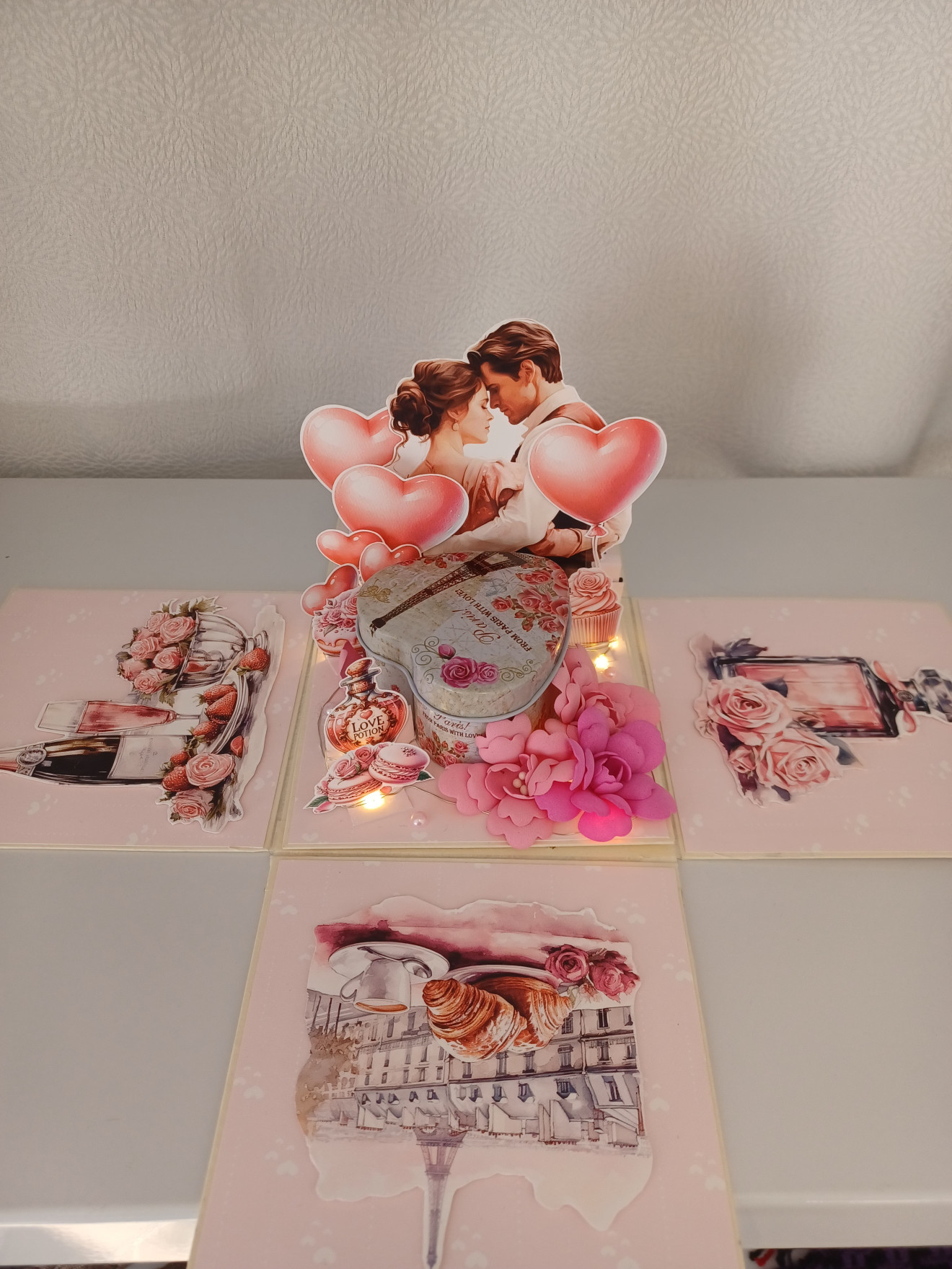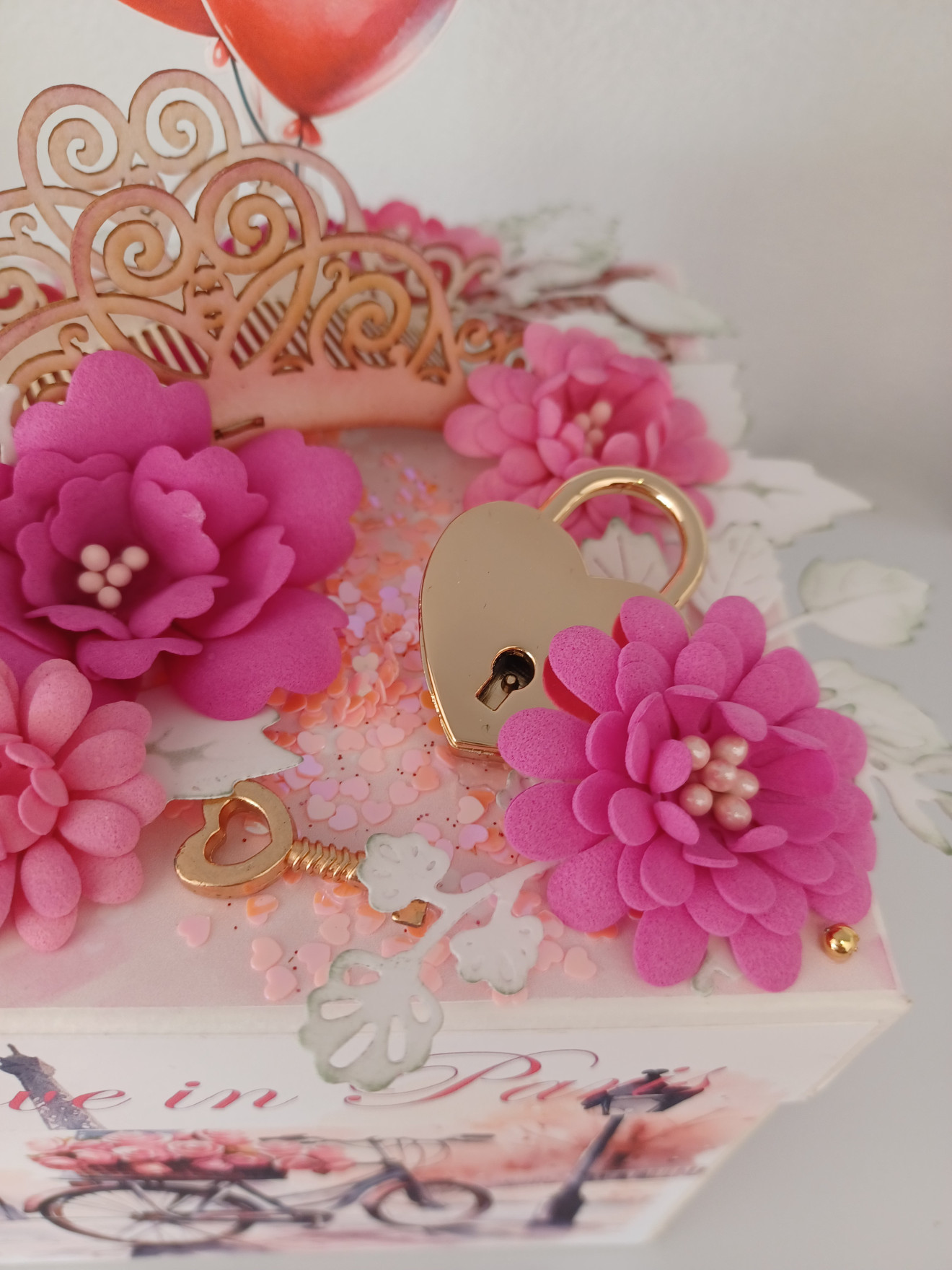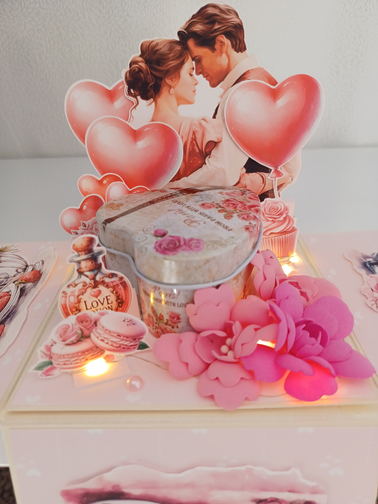Експлоадираща кутия за Свети Валентин. Съдържа метална кутия, в която може да се сложи магнит със снимка, бонбони, цветя или пък годежен пръстен.