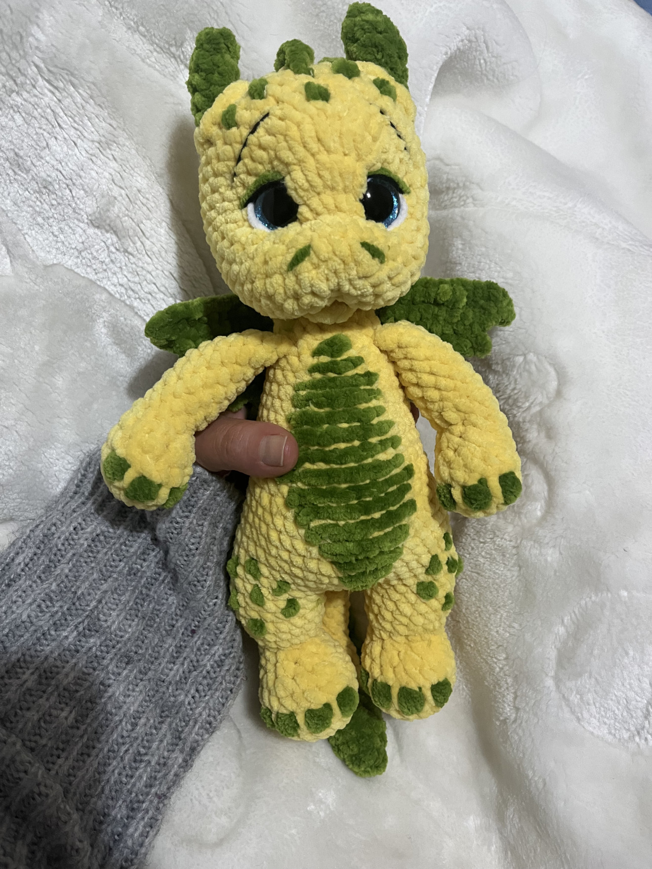 Изработено ръчно от сертифицирана хипоалергенна плюшена прежда и пълнеж, обезопасени пластмасови елементи, без възможност за изваждане. Възможна персонализация по избор.