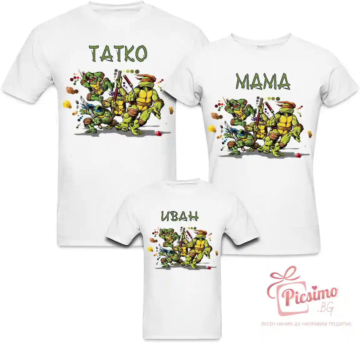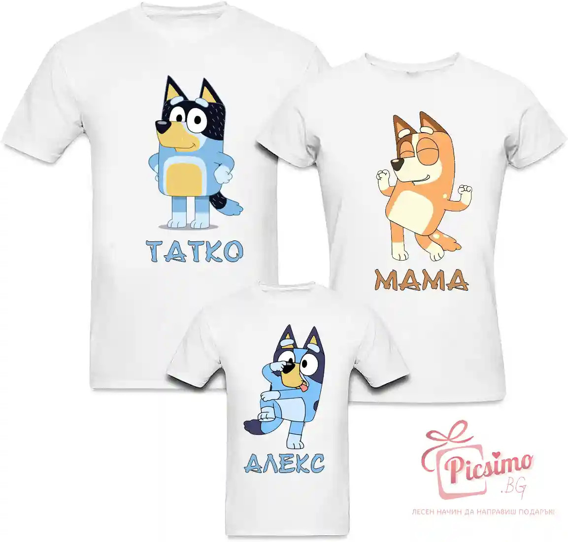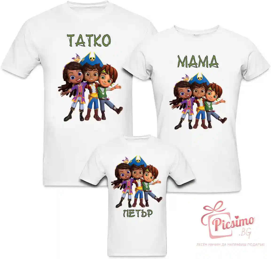 Комплект тениски за детски рожден ден на тема по Ваш избор Всяка тениска и/или боди 19.99лв. ------------------------------------------- Размери боди 56-98 Размери детска тениска 92-164 Размери дамска тениска S-2XL Размери мъжка тениска S-5XL Всички са 100% памук Наситен DTG печат, хипоалергичен, оригинални мастила, които не дразнят чувствителната бебешка кожа Изработка до 24ч. Опция преглед преди заплащане www.picsimo.bg