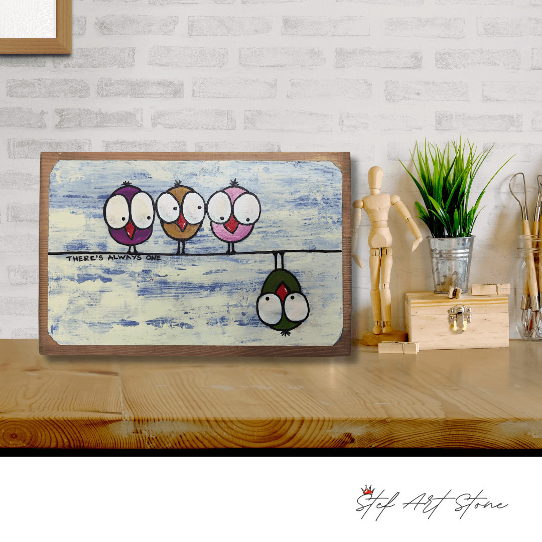 Ръчно рисувана картина за стена - акрил. Създайте уникална атмосфера в своя дом с тази ръчно рисувана картина "Да се осмелиш да бъдеш различен". Вдъхновена от идеята да се откроиш от масата и да бъдеш смел в индивидуалността си. Размер 30х20 см. Изработена върху дървена основа с дебелина 2 см. Използвани са висококачествени акрилни бои. Картината е с допълнителен слой защитно покритие, което позволява и почистване. Готова за окачване. В кутия • СЕРТИФИКАТ за автентичност от автора. Плащане с наложен платеж с опция преглед. Подарете си изкуство и създайте пространство, което отразява вашата индивидуалност и стил. ⭐ За бърза поръчка телефон: 0876 668603
