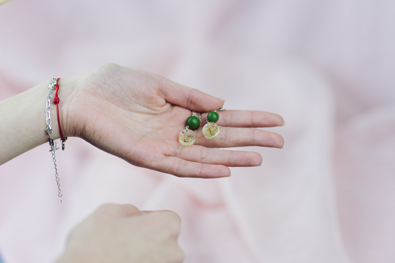 Обеци с епоксидна смола. Използвана е медицинска стомана и полимерна глина.