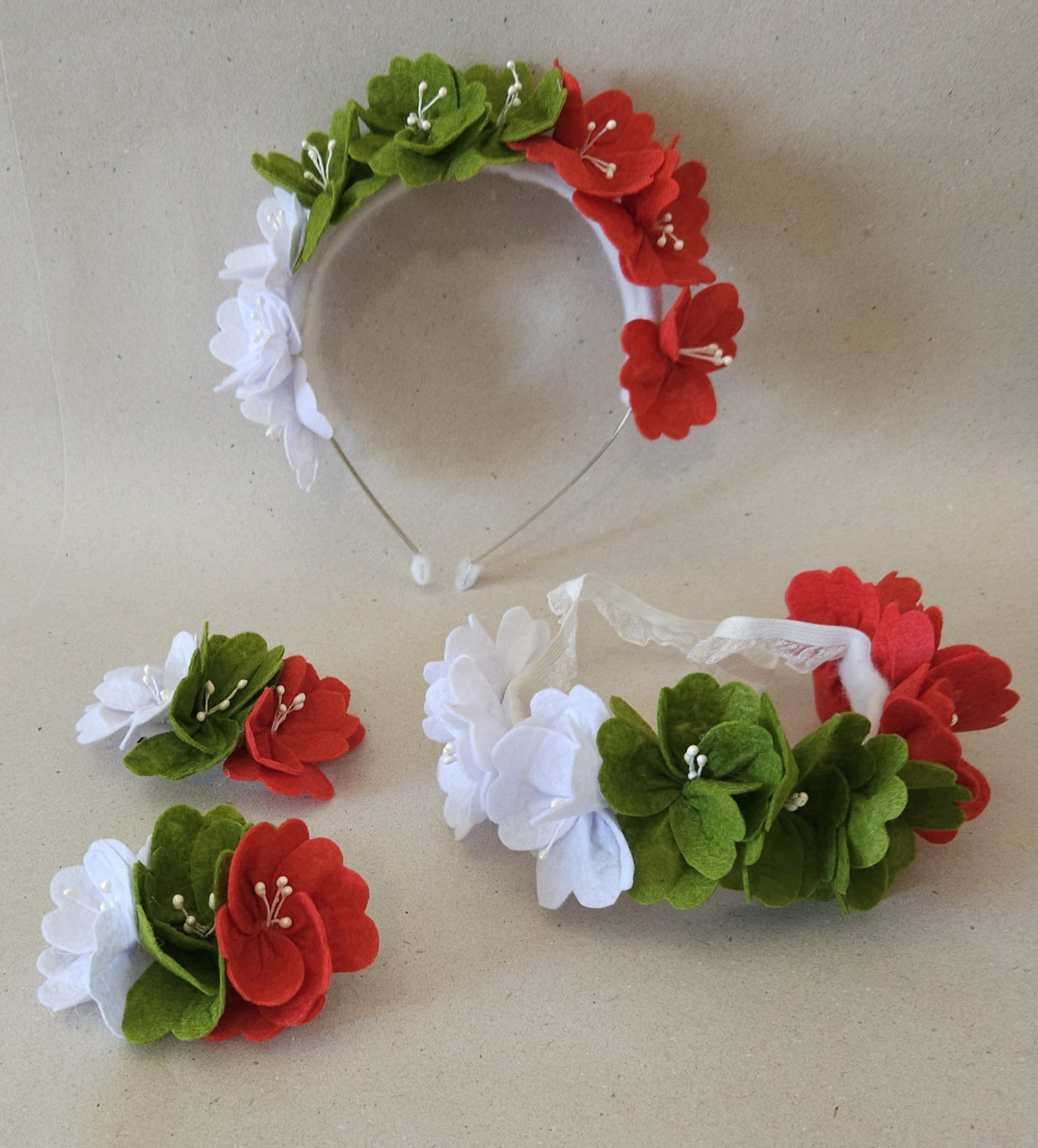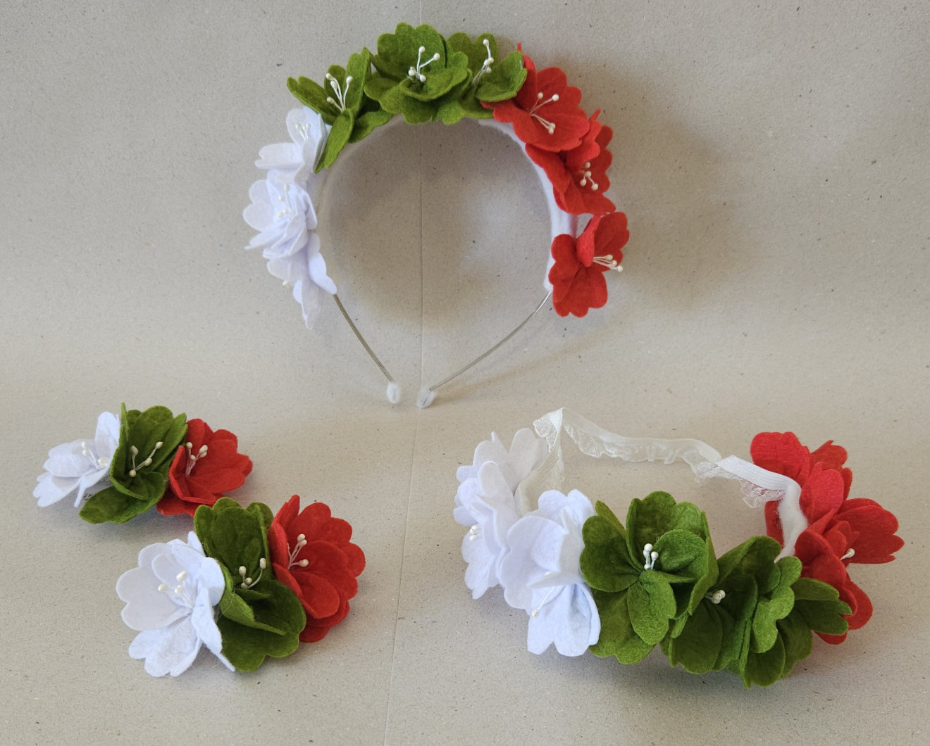 Комплект диадема,лента и фибички ръчно изработени от филц
