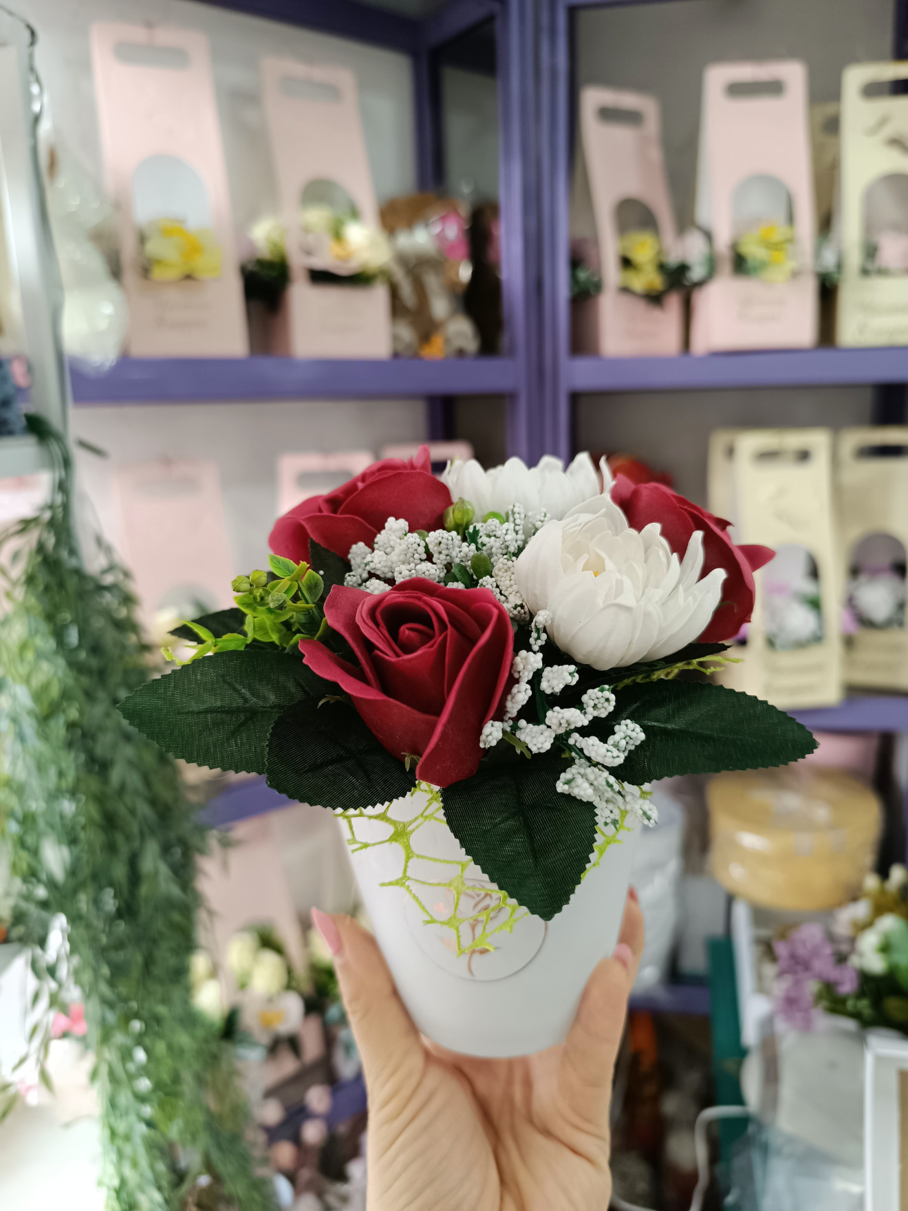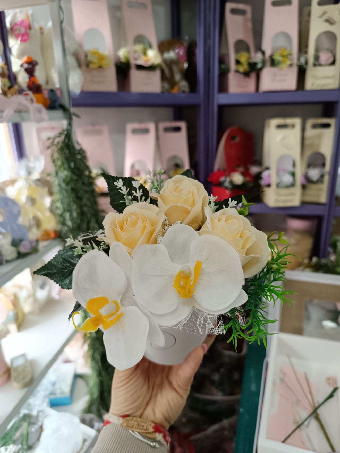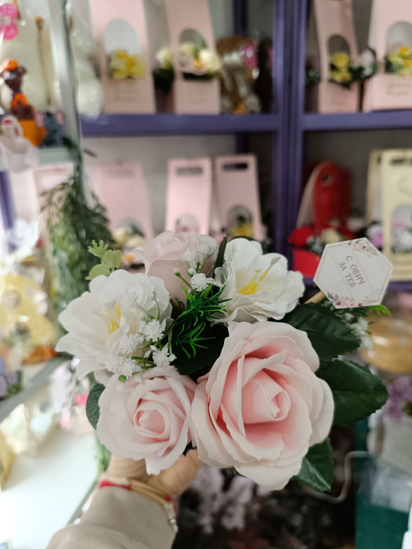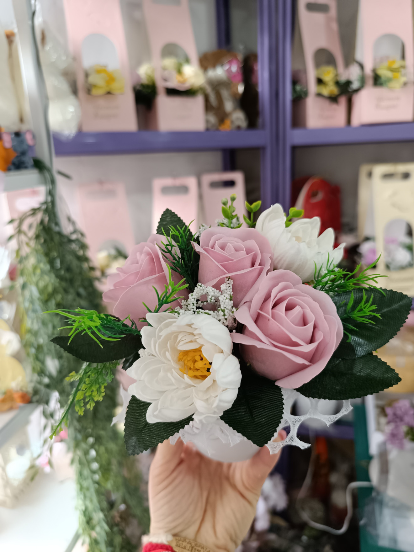 Аранжировки за 8-ми март с цветя от пластичен сапун
