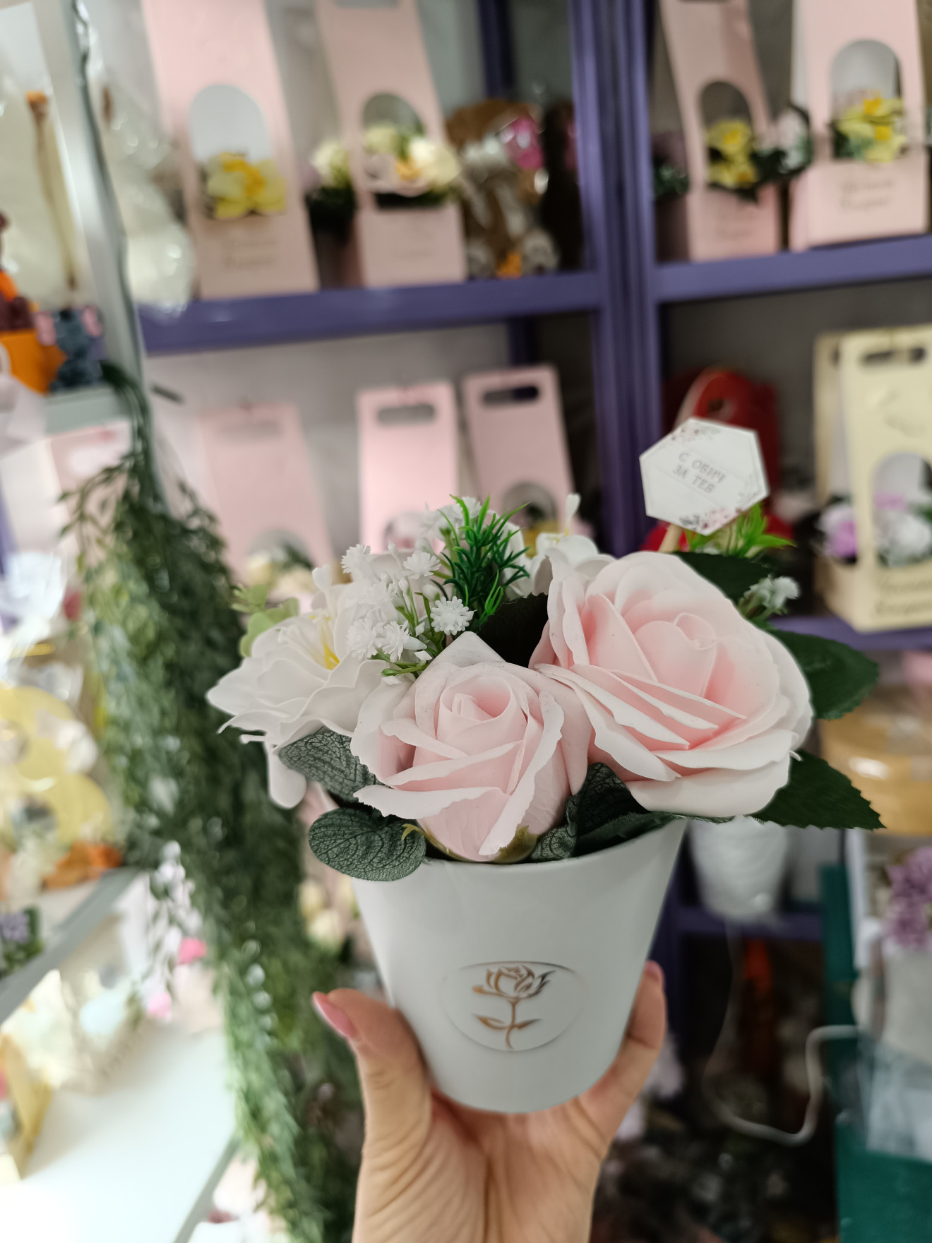 Различни модели аранжировки със сапунени цветя - рози, хризантеми, алстромерии и др. Нежно ухание и дълготрайна красота, които си струва да подарите за 8-ми март!