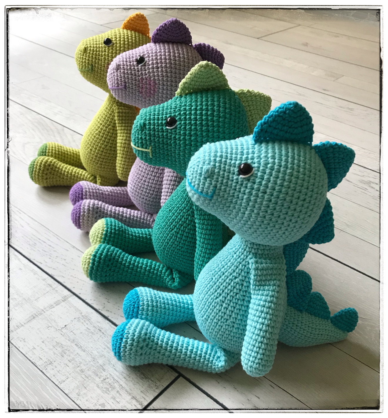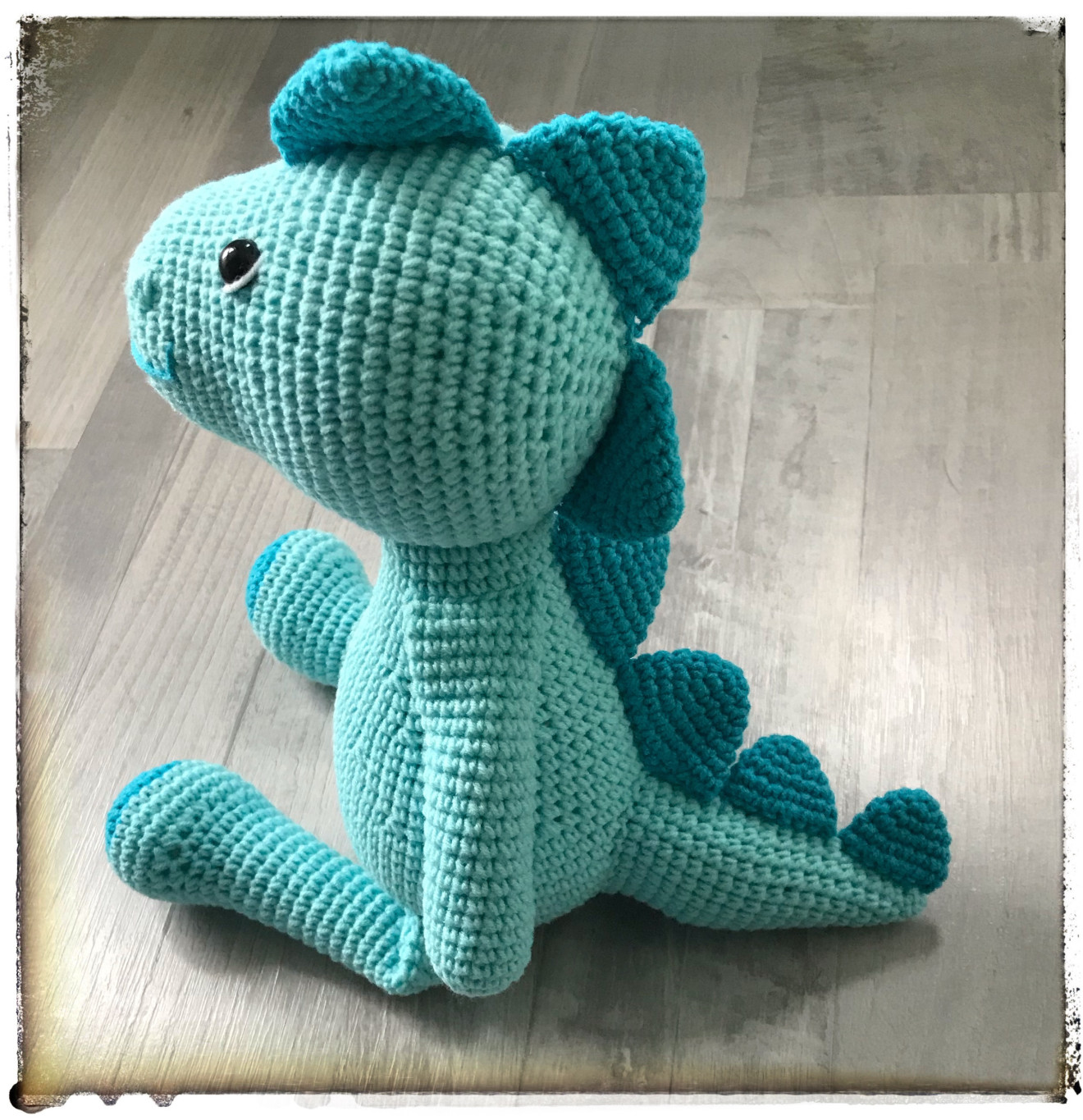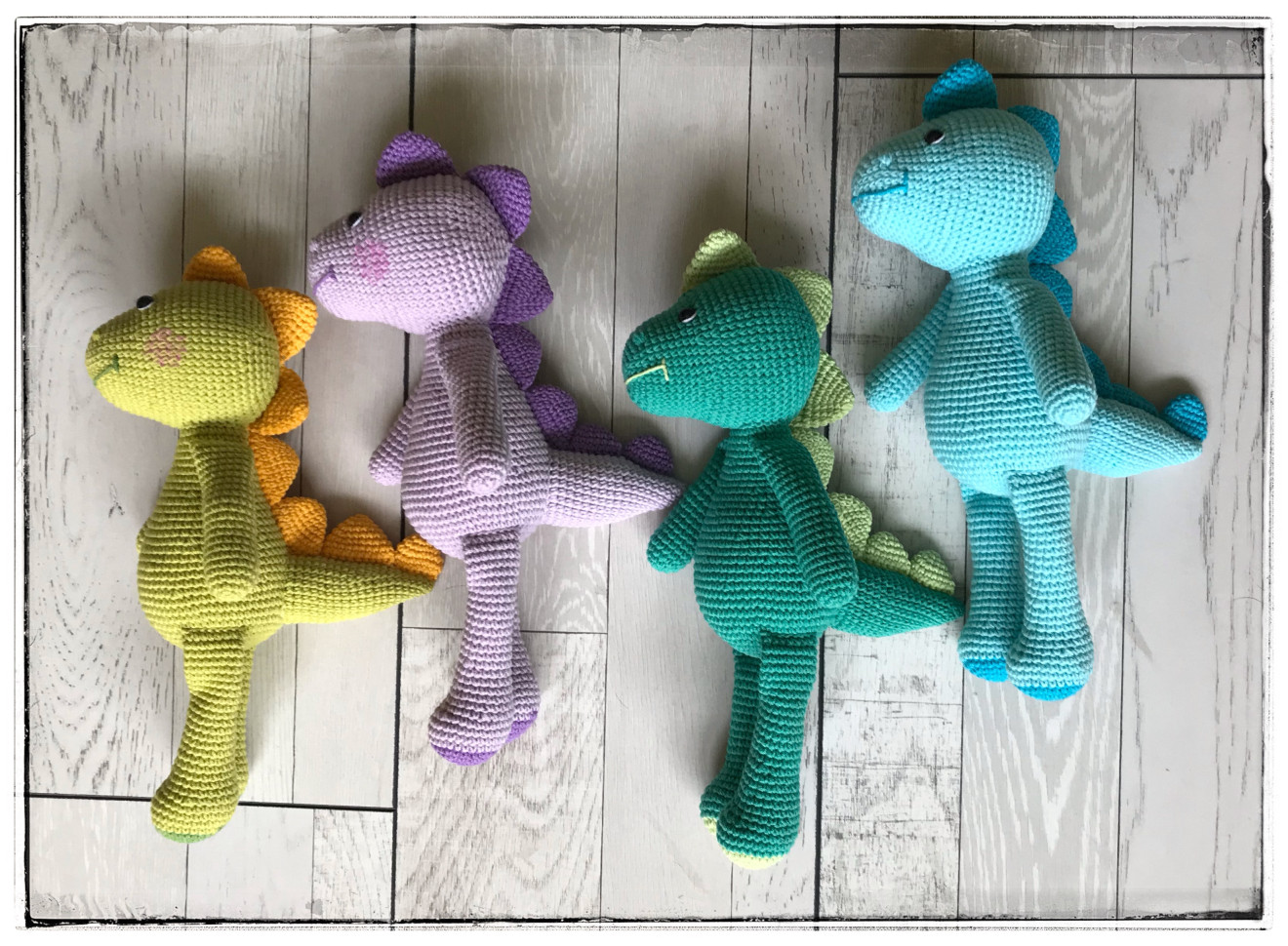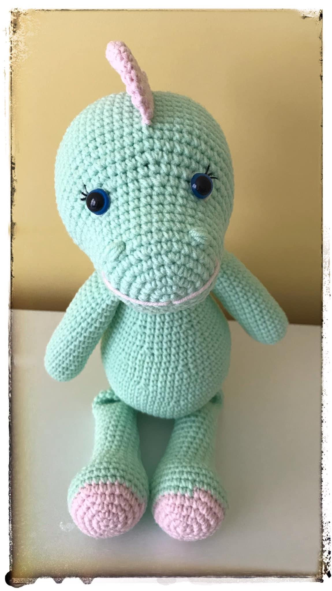 Дино ? ?висок 32 см. ?хопоалергична прежда ?пълнеж силиконов пух ?безопасни очи на винт ?може да се пере на 30 градуса без центруфуга Ако пък искате да зарадвате някой малчуган с Дино в друг цвят, можете да ми пишете?