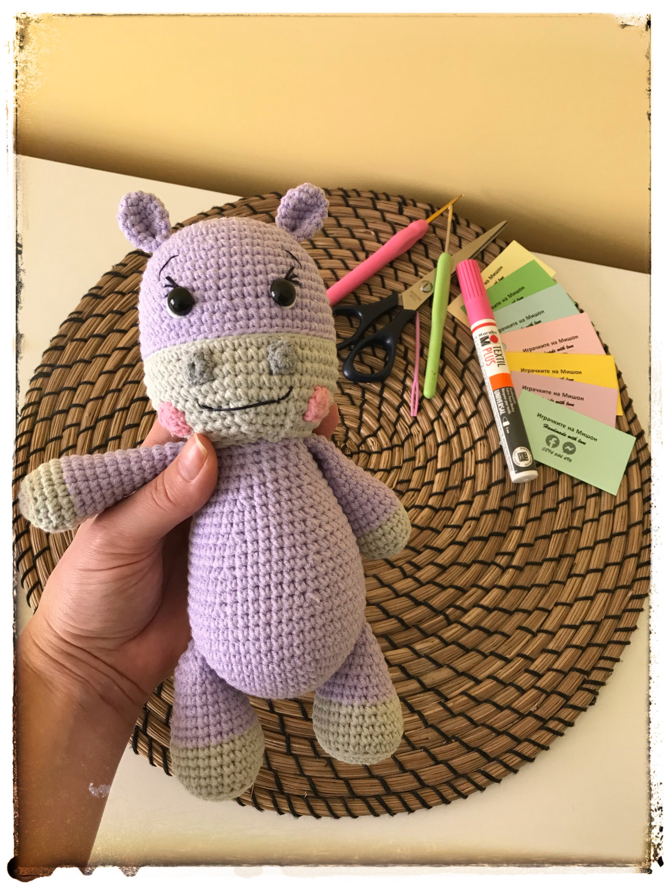 Представям ви новата ми играчка хопопотамката Ели??Висока 23 см, с приятно закръглено телце и с широка усмивка, тя в готова да се гушка с новата си приятелка. За въпроси и поръчки може да ми пишете? във фейсбук страничката ми.