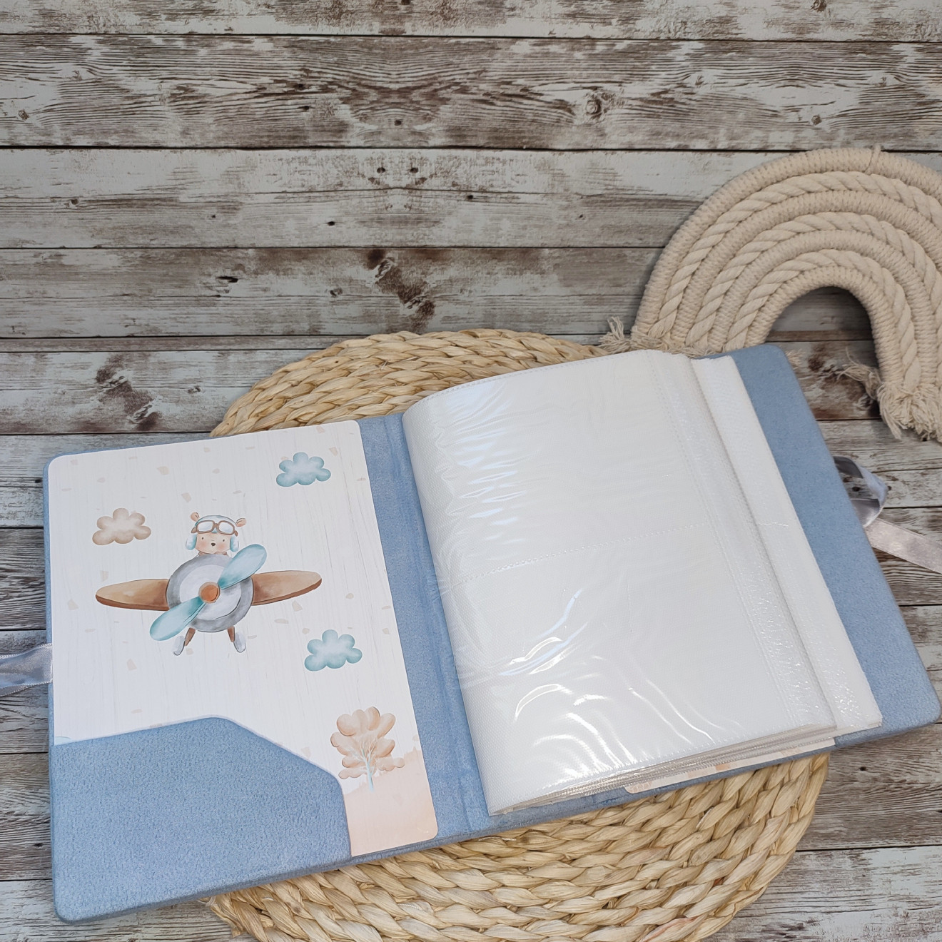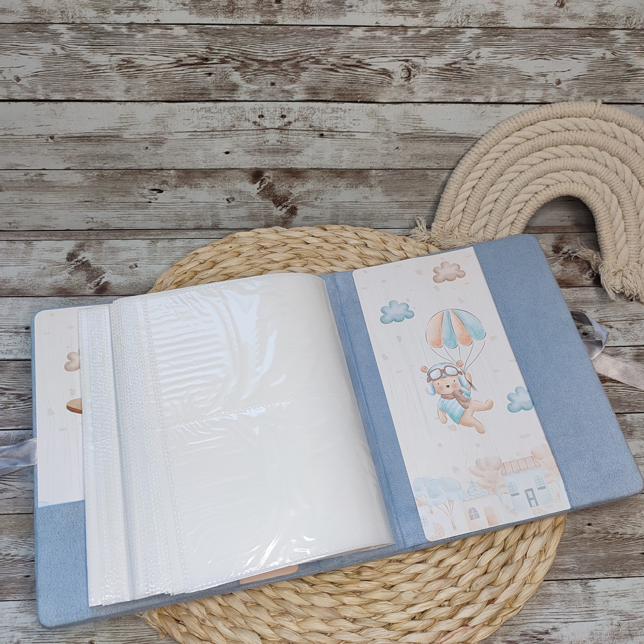 Албум с облечени в текстил корици и с прозрачни джобчета с място за 200бр снимки размер 10/15cm.