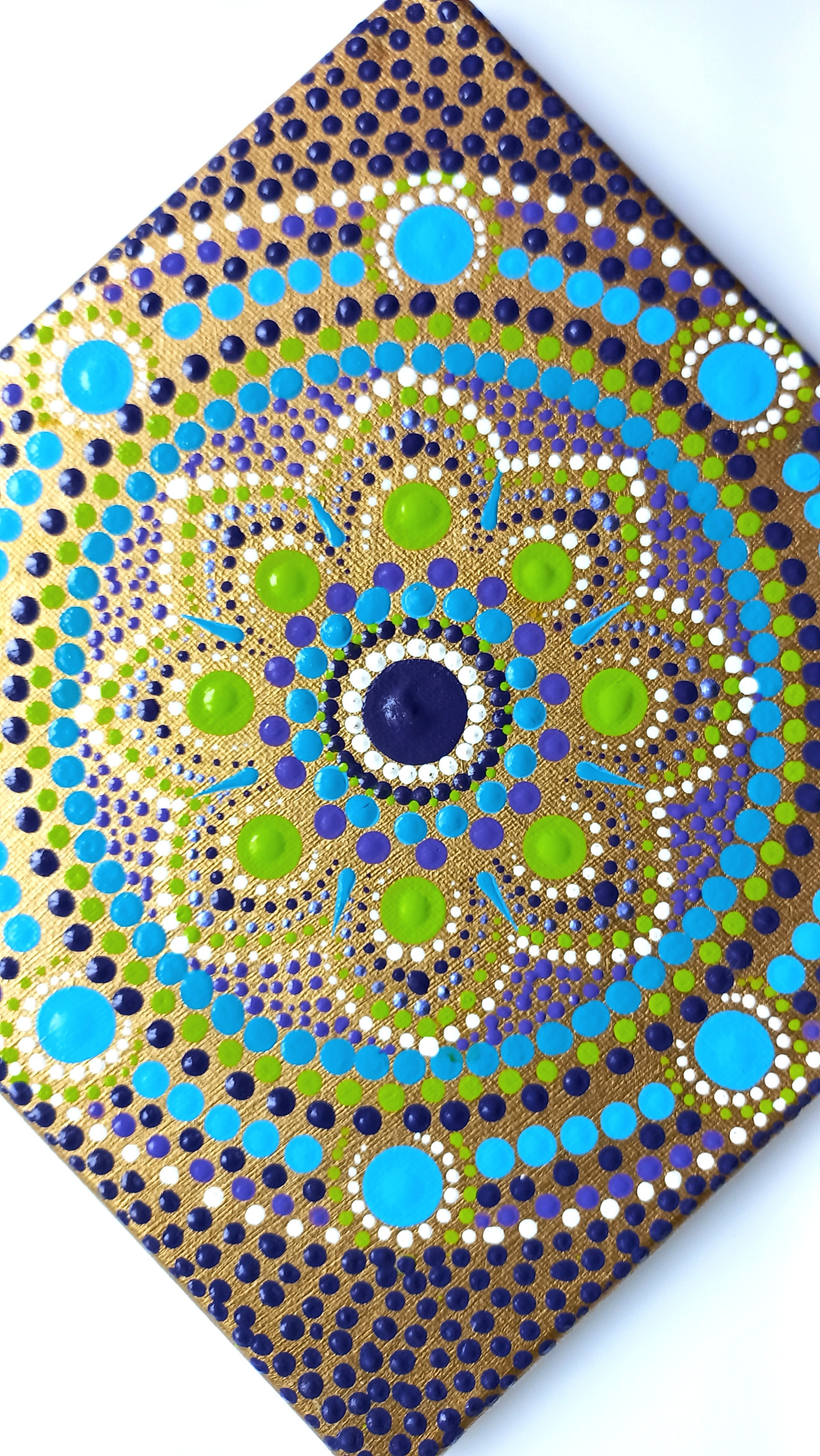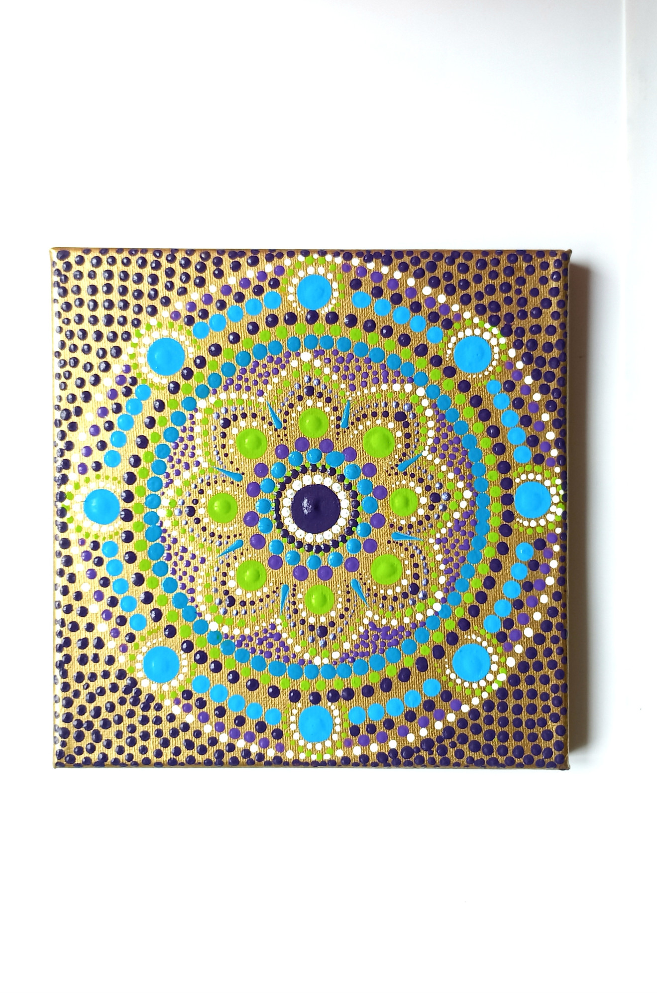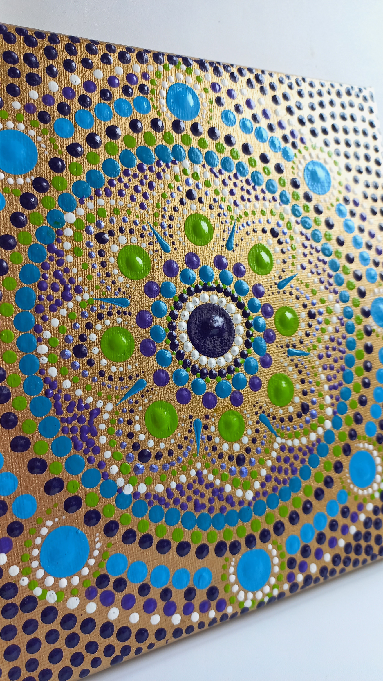 Енергийна мандала за духовна сила и хармонизиране на ума върху платно на рамка. Размери: 20/20 см. Налична.