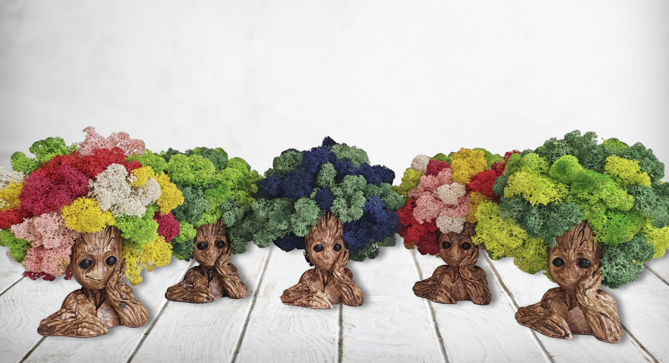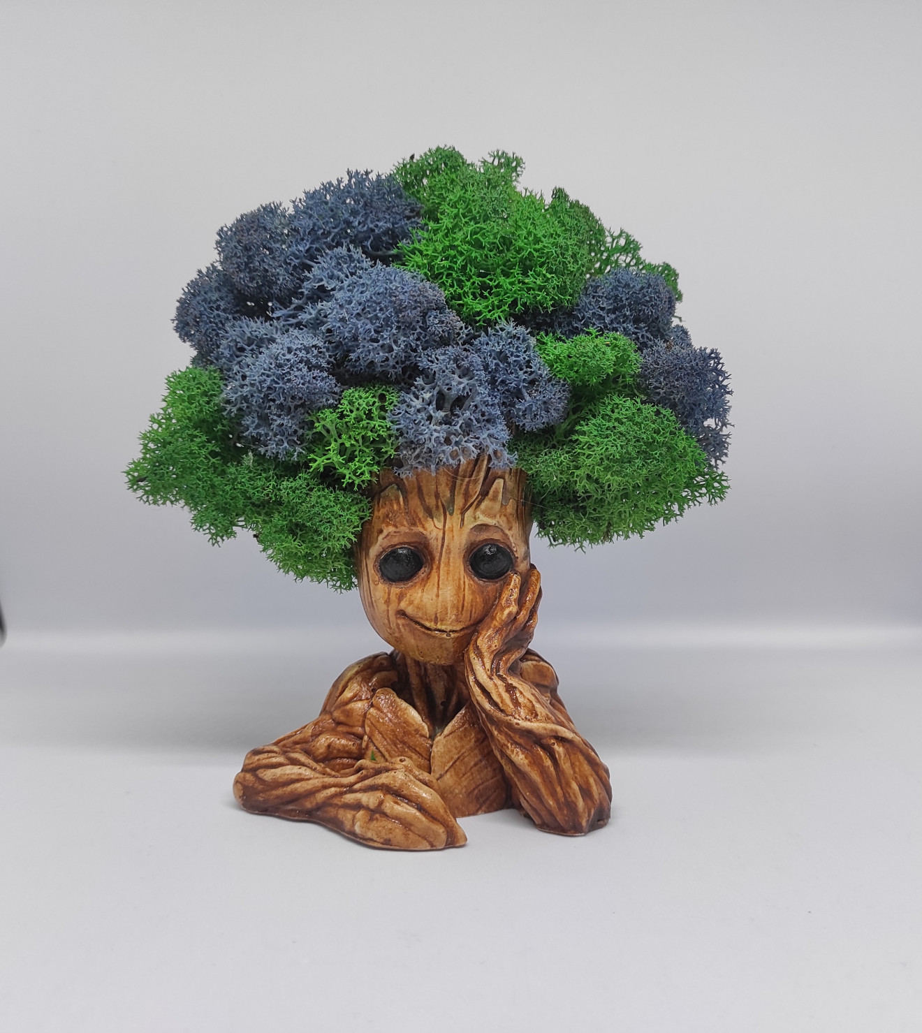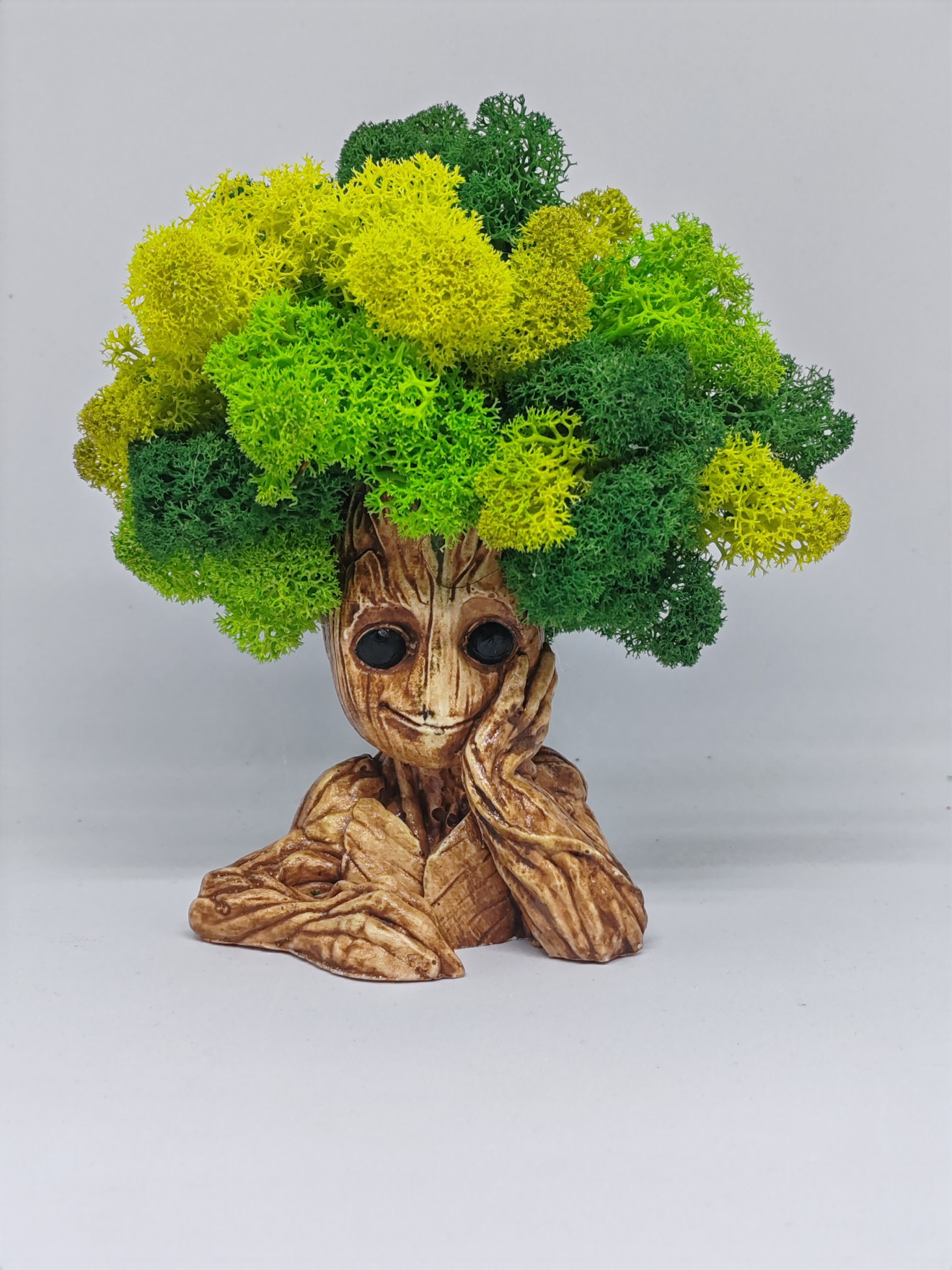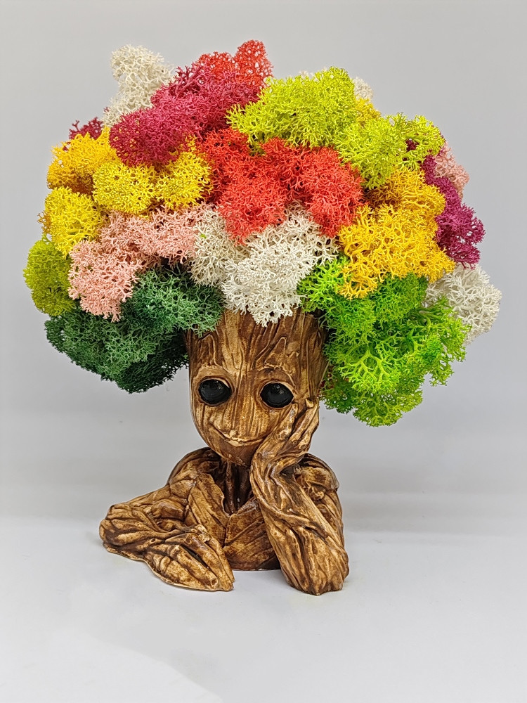 Декорация Грут със скандинавски мъх . Подарък за всеки повод. Грут пазителя на галактиката. Страхотна декорация със скандинавски мъх за всеки любител на това сладко човече. Изработен от гипсокерамика и декориран с тези страхотни цветове скандинавски мъх, той се превръща в прекрасен подарък за всеки повод или без повод. Размер: 16см.Изработен от керамичен гипс и декорирана с естествен Скандинавски мъх. Мъха не изисква почти никаква поддръжка. Той не се полива, не се тори, а се храни от влажността на помещението. Идеален подарък за всеки повод. Ние от Ателие за подаръци можем да изработим перфектният подарък за вас.