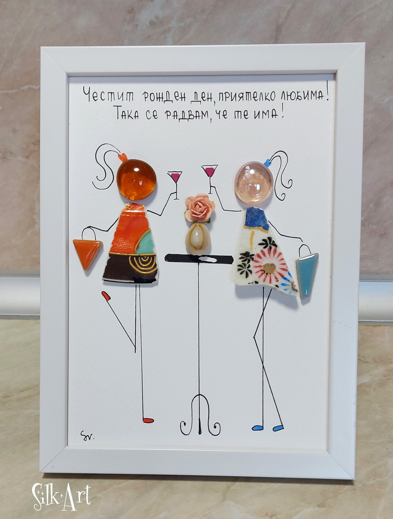 Рамка с размер 15/20 см. Декорация с парченца порцелан.