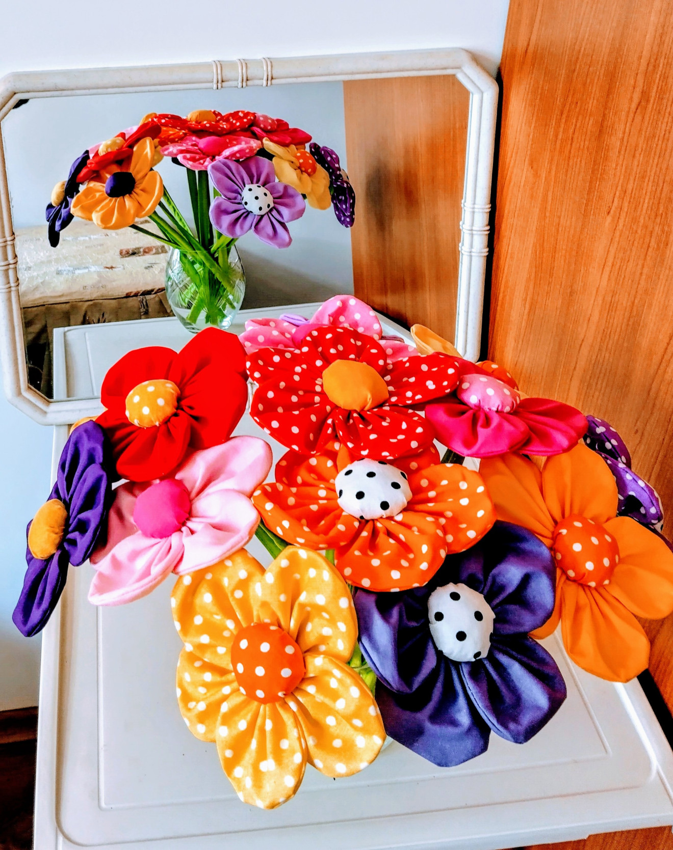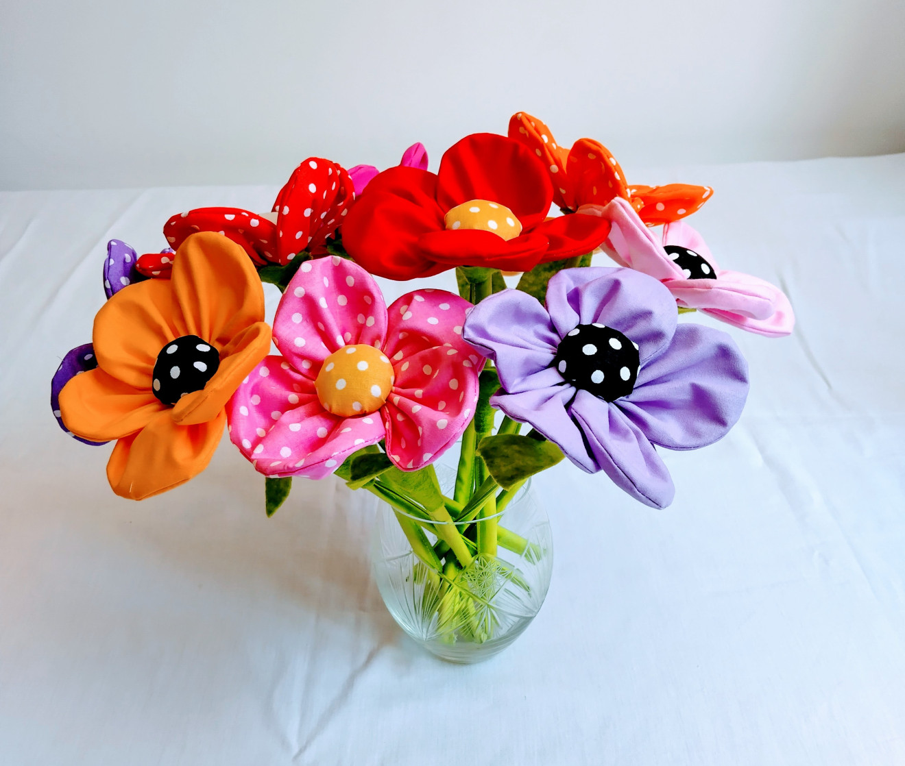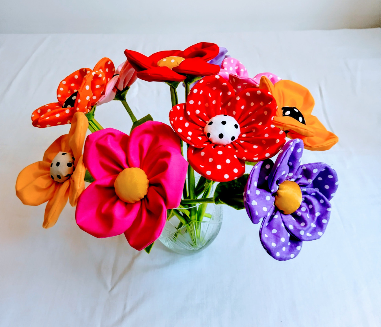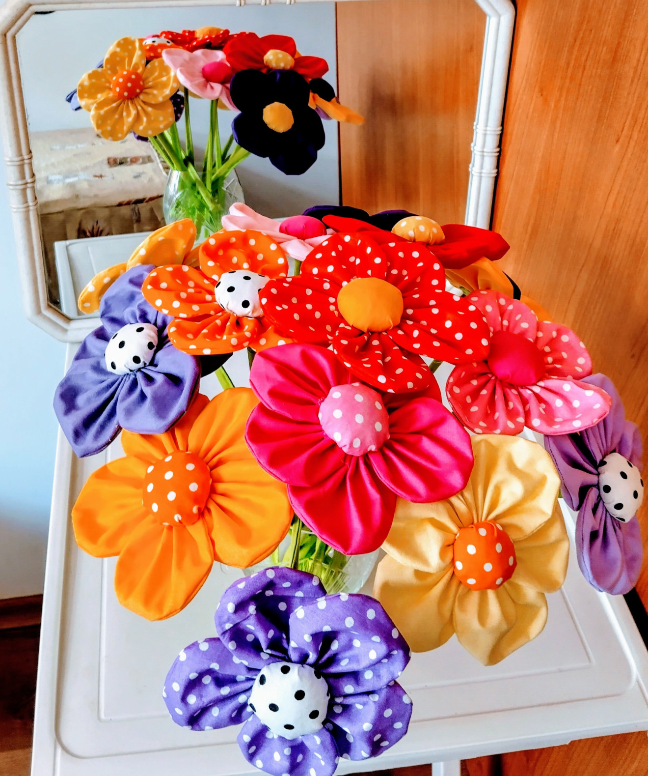 Цветята са изработени от текстил и са високи 40см Налични са в различни разцветки