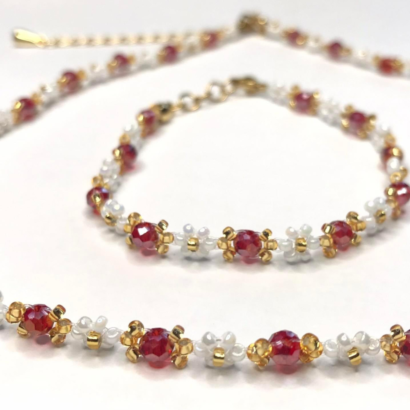 Комплект колие и гривна. Дължината им се регулира няколко сантиметра, но е добре да има ориентировъчен размер при бижутата на корда. ? Оставам на разположение за допълнителни въпроси. Гривна 25 лв. Колие 40 лв. При комплект цената е 60 лв.