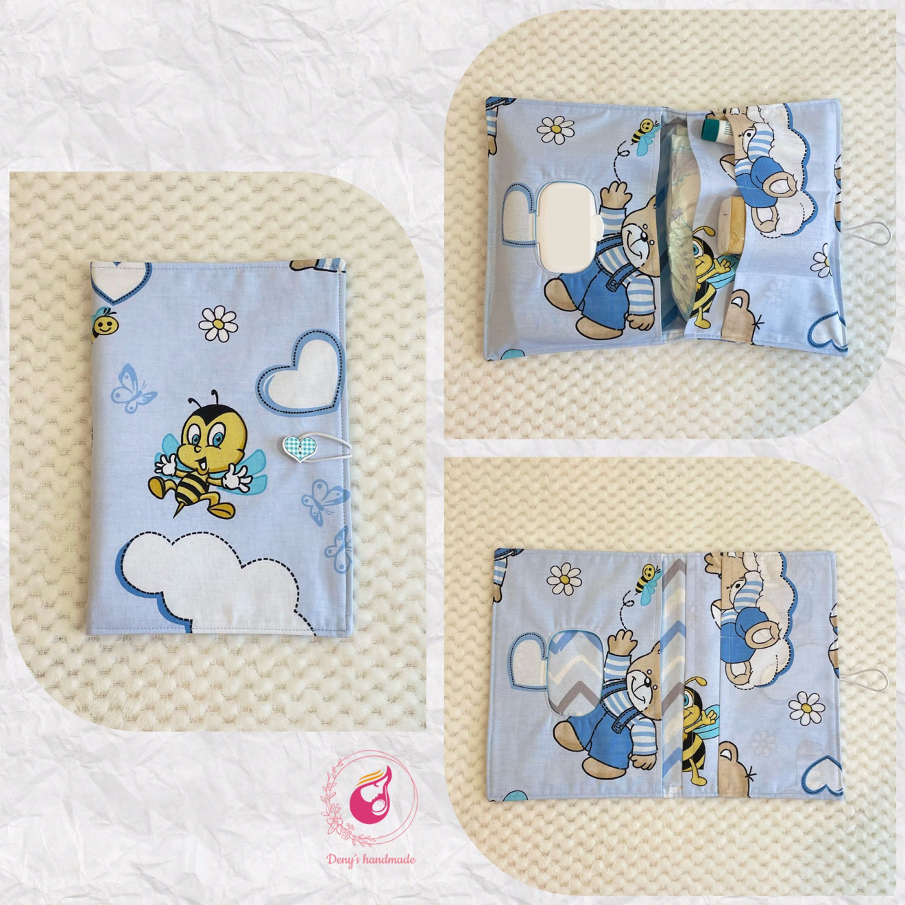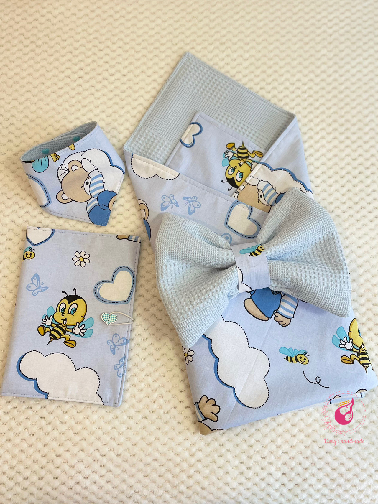 Ако се чудите какво да подарите за погача, кръщене, рожден ден, аз съм тук за да ви помогна с това! Практичен и красив подарък за вашето мъниче или за бъдещи родители, които са в очакване на щастието да се роди✨ Комплект, състоящ се от порт - бебе одеялце с възглавничка и несесер за бебешки принадлежности✨ ✨Одеялце порт бебе - идеално за изписване или излизане навън, а когато свалите панделката тя става на възглавничка. Използвате си я където ви е удобно а порт бебе се превръща в одеялце. Прекрасен подарък за новородено бебе с размери - 80/80 см. с две лица. Памучен плат ранфорс + памучно пике. Вариант без добавена вата. Възглавничката-панделка е с размери 25/30 см. подходяща за новородено. ✨ Със своя компактен размер и удобни джобове, несесерът е идеален за съхранение на мокри кърпи, памперси, кремчета и всичко останало, от което вашето бебе може да има нужда по време на пътуване. Вътрешните джобове в несесера позволяват лесен достъп до всички необходими принадлежности, докато същевременно ги държат организирани и на място. ✨ Знаем колко е нужен когато започнат да излизат първите зъбки и когато започне храненето с пюрета. Цветни и практични те са помощ за всяка мама.Закопчават се с тик так копченца на две степени, което позволява регулиране на ширината при поставяне. ☀️Препоръчително е пране в пералня при 30 градуса и деликатна програма. Могат да се поръчат и отделно.