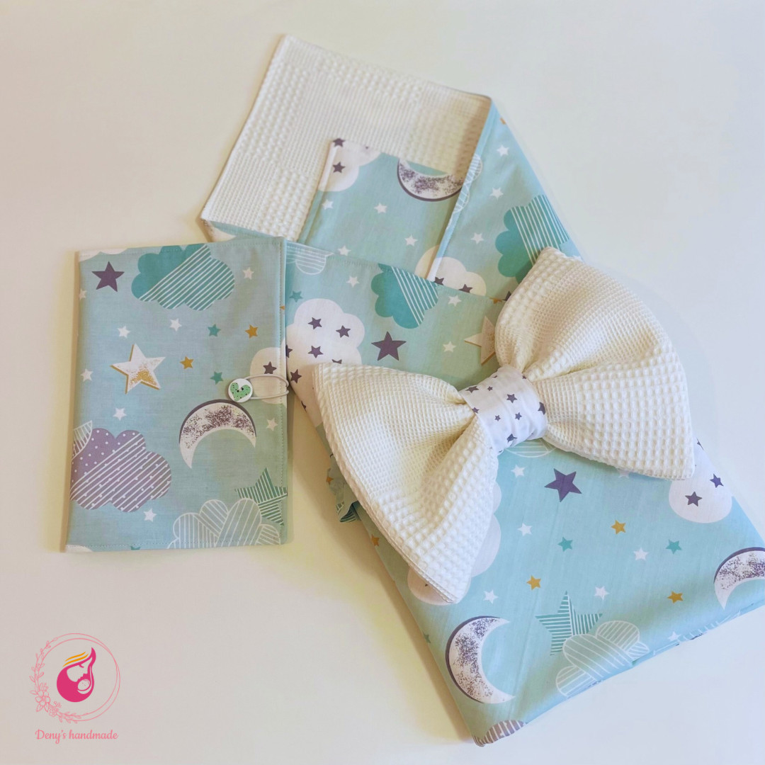 Ако се чудите какво да подарите за погача, кръщене, рожден ден, аз съм тук за да ви помогна с това! Практичен и красив подарък за вашето мъниче или за бъдещи родители, които са в очакване на щастието да се роди✨ Комплект, състоящ се от порт - бебе одеялце с възглавничка и несесер за бебешки принадлежности✨ ✨Одеялце порт бебе - идеално за изписване или излизане навън, а когато свалите панделката тя става на възглавничка. Използвате си я където ви е удобно а порт бебе се превръща в одеялце. Прекрасен подарък за новородено бебе с размери - 80/80 см. с две лица. Памучен плат ранфорс + памучно пике. Вариант без добавена вата. Възглавничката-панделка е с размери 25/30 см. подходяща за новородено. ✨ Със своя компактен размер и удобни джобове, несесерът е идеален за съхранение на мокри кърпи, памперси, кремчета и всичко останало, от което вашето бебе може да има нужда по време на пътуване. Вътрешните джобове в несесера позволяват лесен достъп до всички необходими принадлежности, докато същевременно ги държат организирани и на място. ☀️Препоръчително е пране в пералня при 30 градуса и деликатна програма. Могат да се поръчат и отделно.
