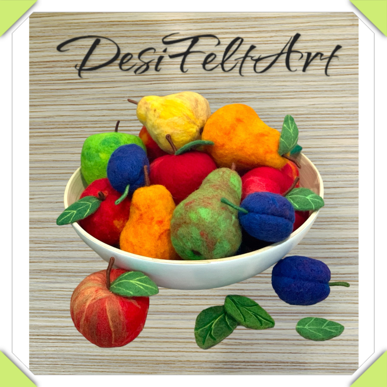 Ръчно изработени плодове от вълна, чрез техника иглонабиване (сухо плъстене). Размери: около 4 х 6см (без дръжките). Подходящи са за декорация Цената е за 1 брой