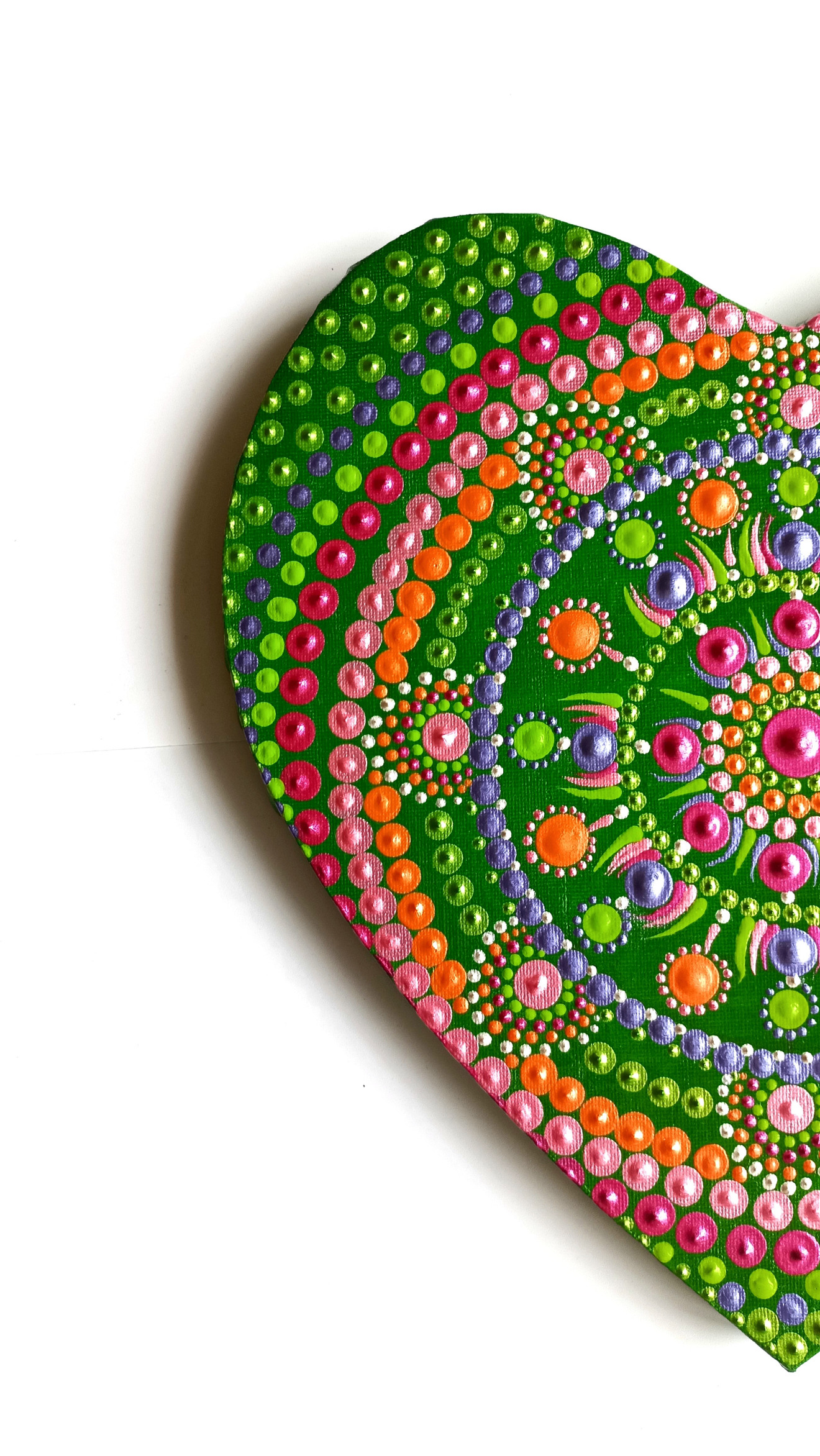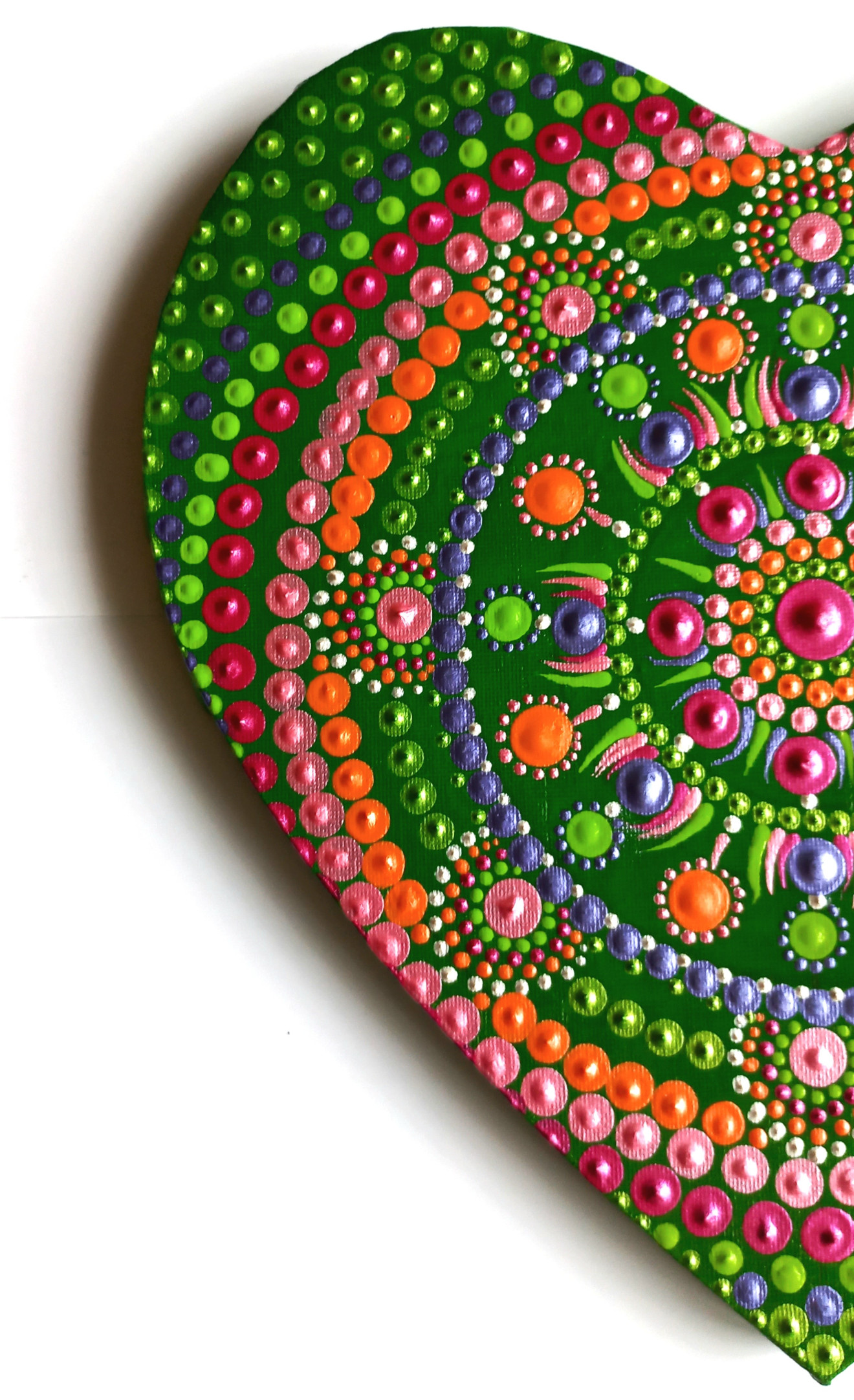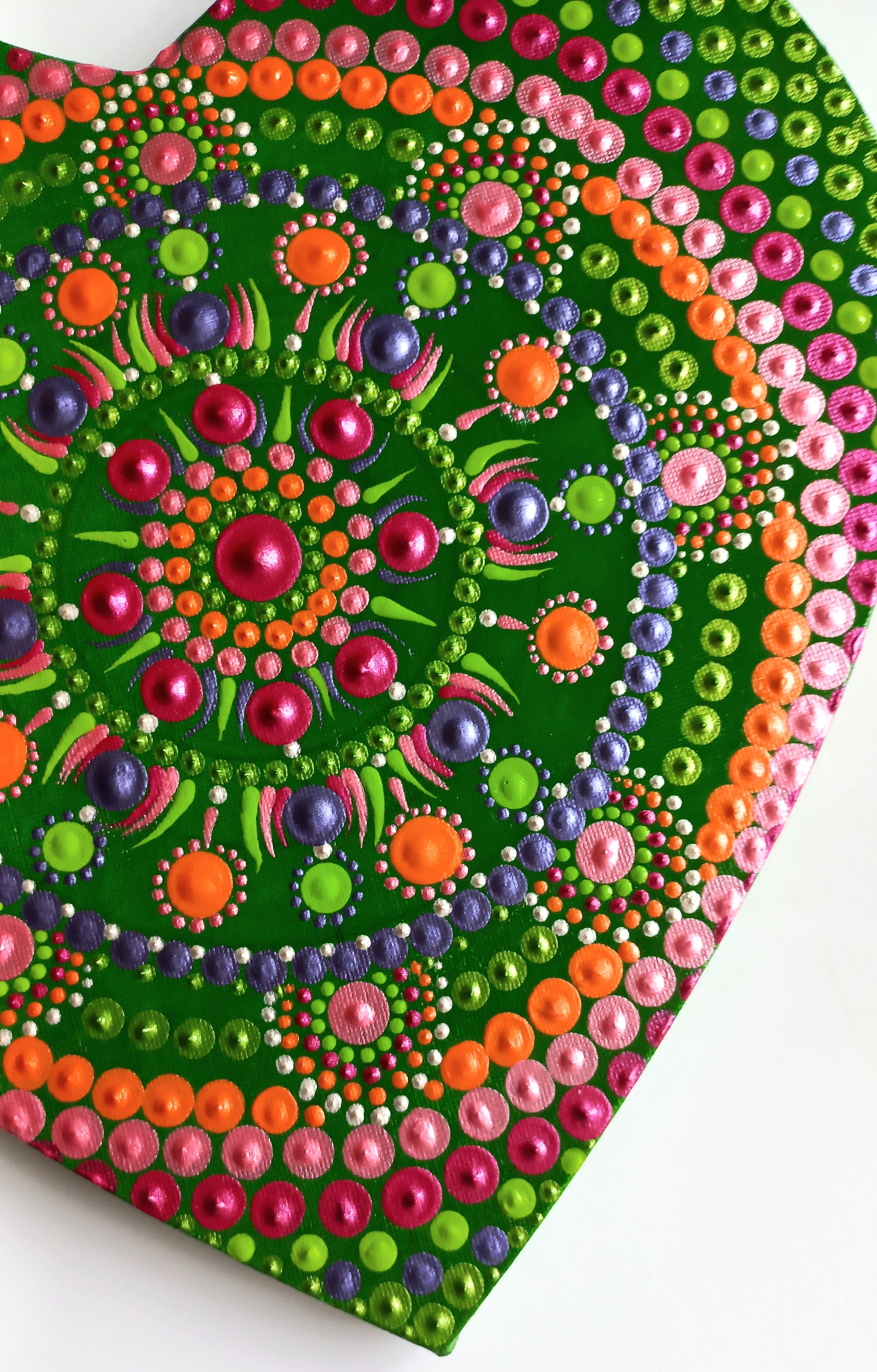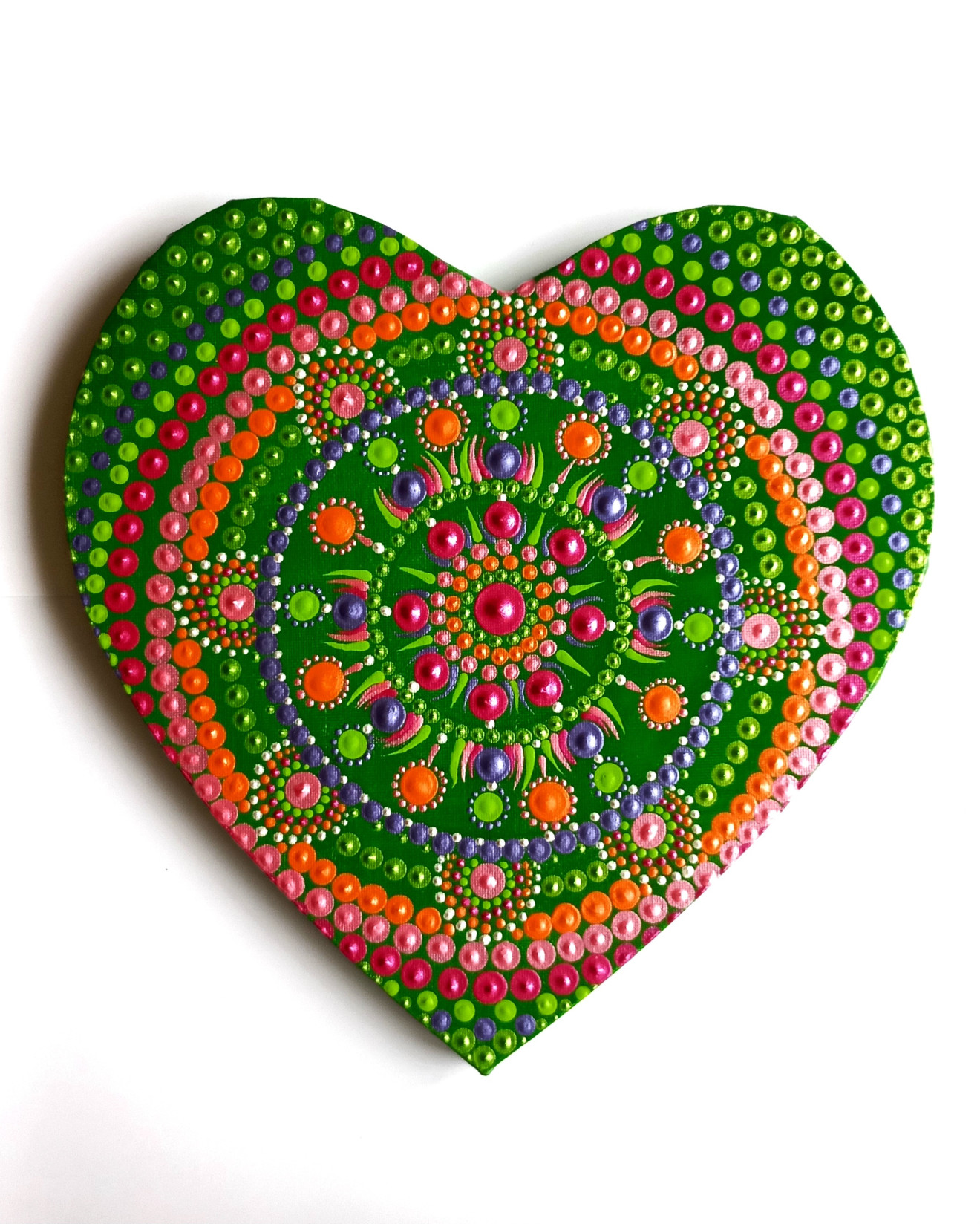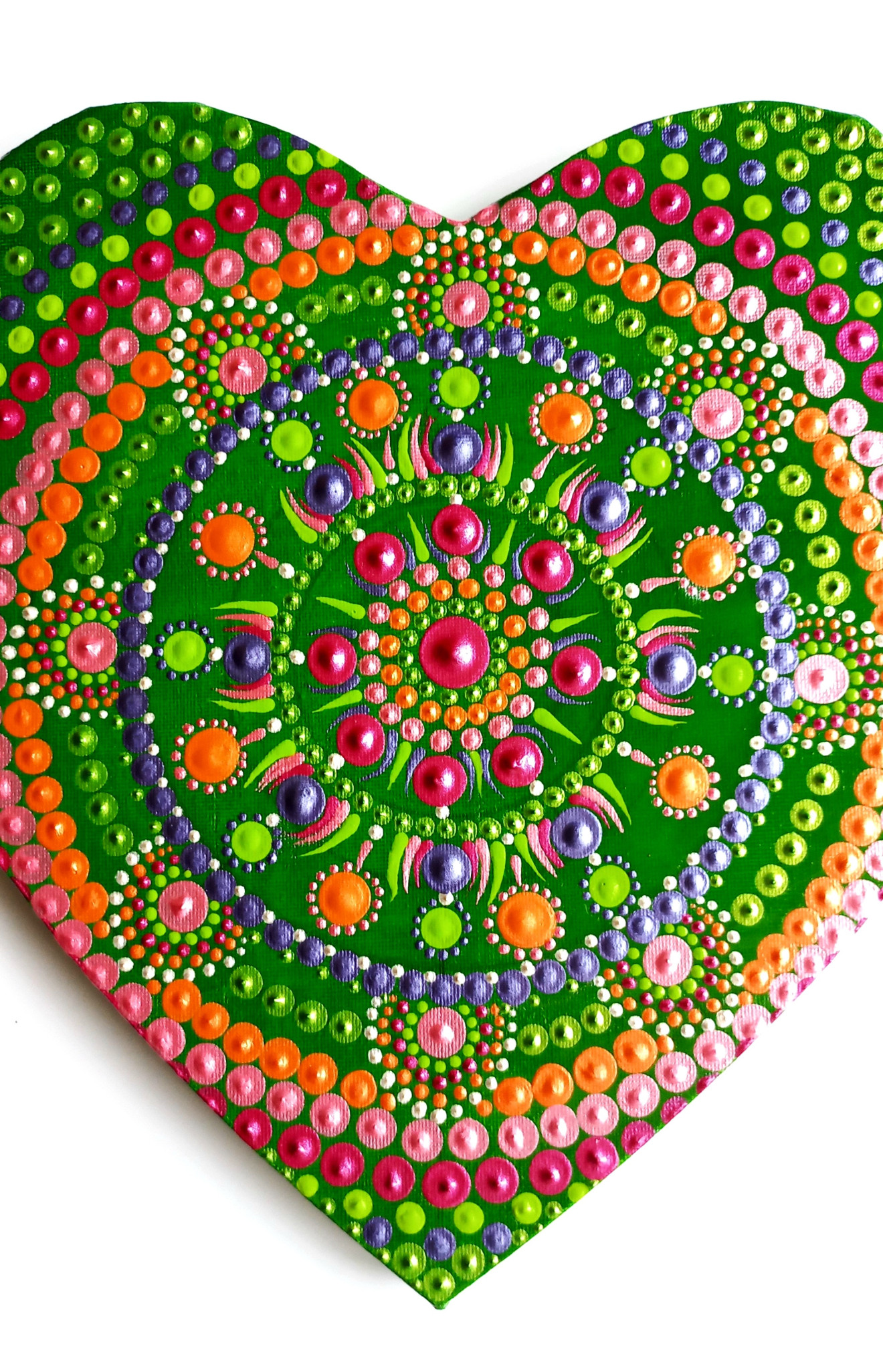 Мандала сърце за стена с енергиен мотив за отваряне на сърдечната чакра, привличане на любов и щастлива споделена връзка. Мандалата е ръчно рисувана върху платно на рамка от 100% памук с размери 30/32 см. Има защитен слой лак. Мандалите са своеобразен магнит за привличане на чиста, положителна енергия, поради което е чудесно да присъстват във всеки дом и пространствата, в които се намираме най-често. Изпращам с опция преглед, като доставката е за сметка на купувача. За поръчки, пишете на лично съобщение?