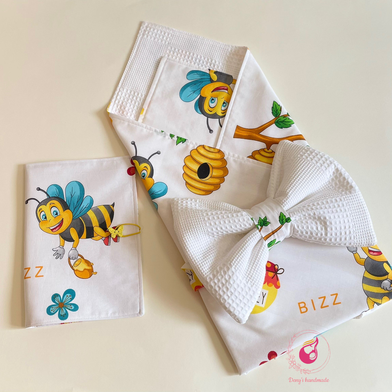 Комплект, състоящ се от порт - бебе одеялце с възглавничка и  несесер за бебешки принадлежности✨