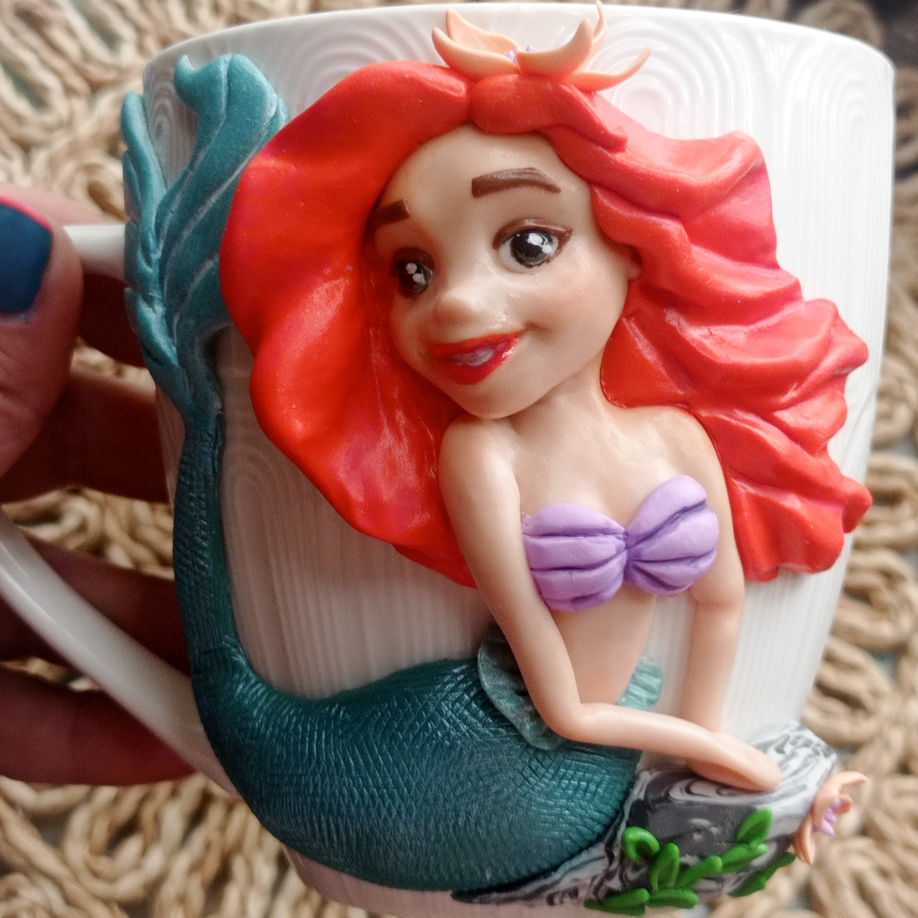 Керамична чаша с полимерна, ръчно изработена декорация от полимерна глина Малката русалка. Изцяло ръчна изработка. Не е налична, изработена по поръчка. Може да се изработи подобна. За повече информация, въпроси и актуален срок на изработка, моля, свържете се с мен на лично съобщение тук или във Фейсбук на страницата ми Бръшлянка ?