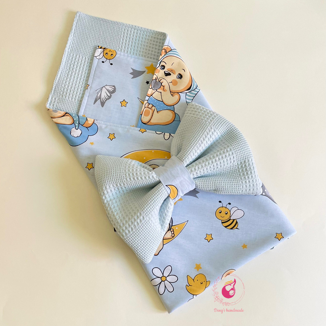 Ако се чудите какво да подарите за погача, кръщене, рожден ден, аз съм тук за да ви помогна с това! Практичен и красив подарък за вашето мъниче или за бъдещи родители, които са в очакване на щастието да се роди✨ Комплект, състоящ се от порт - бебе одеялце с възглавничка и несесер за бебешки принадлежности✨ ✨Одеялце порт бебе - идеално за изписване или излизане навън, а когато свалите панделката тя става на възглавничка. Използвате си я където ви е удобно а порт бебе се превръща в одеялце. Прекрасен подарък за новородено бебе с размери - 80/80 см. с две лица. Памучен плат ранфорс + памучно пике. Вариант без добавена вата. Възглавничката-панделка е с размери 25/30 см. подходяща за новородено. ✨ Със своя компактен размер и удобни джобове, несесерът е идеален за съхранение на мокри кърпи, памперси, кремчета и всичко останало, от което вашето бебе може да има нужда по време на пътуване. Вътрешните джобове в несесера позволяват лесен достъп до всички необходими принадлежности, докато същевременно ги държат организирани и на място. ☀️Препоръчително е пране в пералня при 30 градуса и деликатна програма. Могат да се поръчат и отделно.