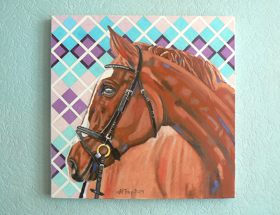 Картина с кон. Маслени бои върху платно. Завършена е 2024 г.