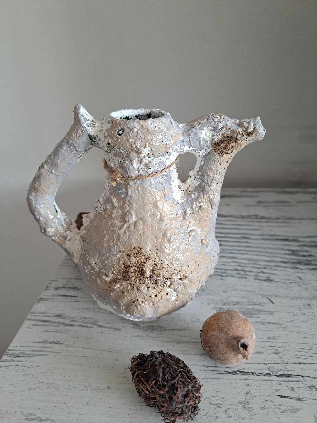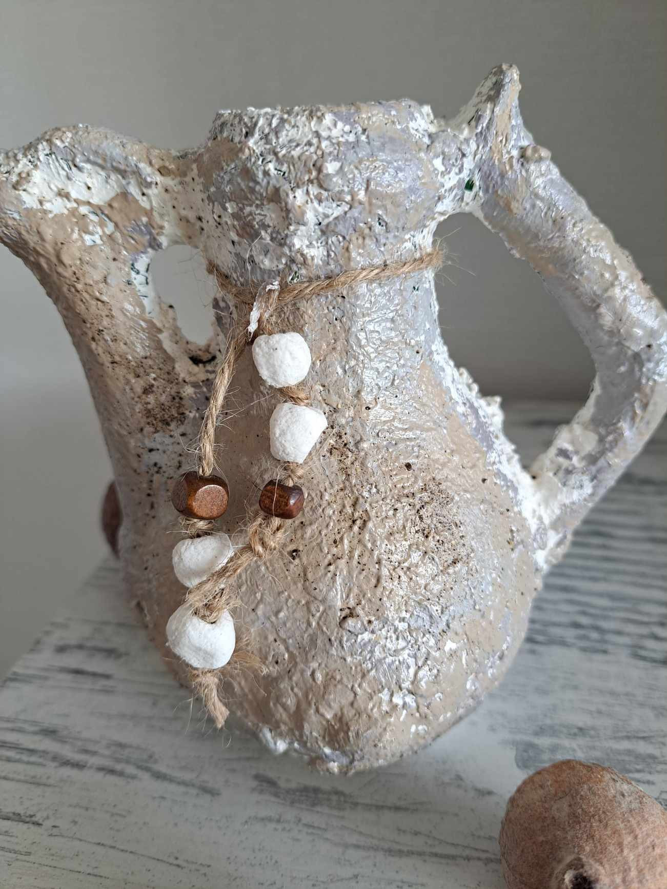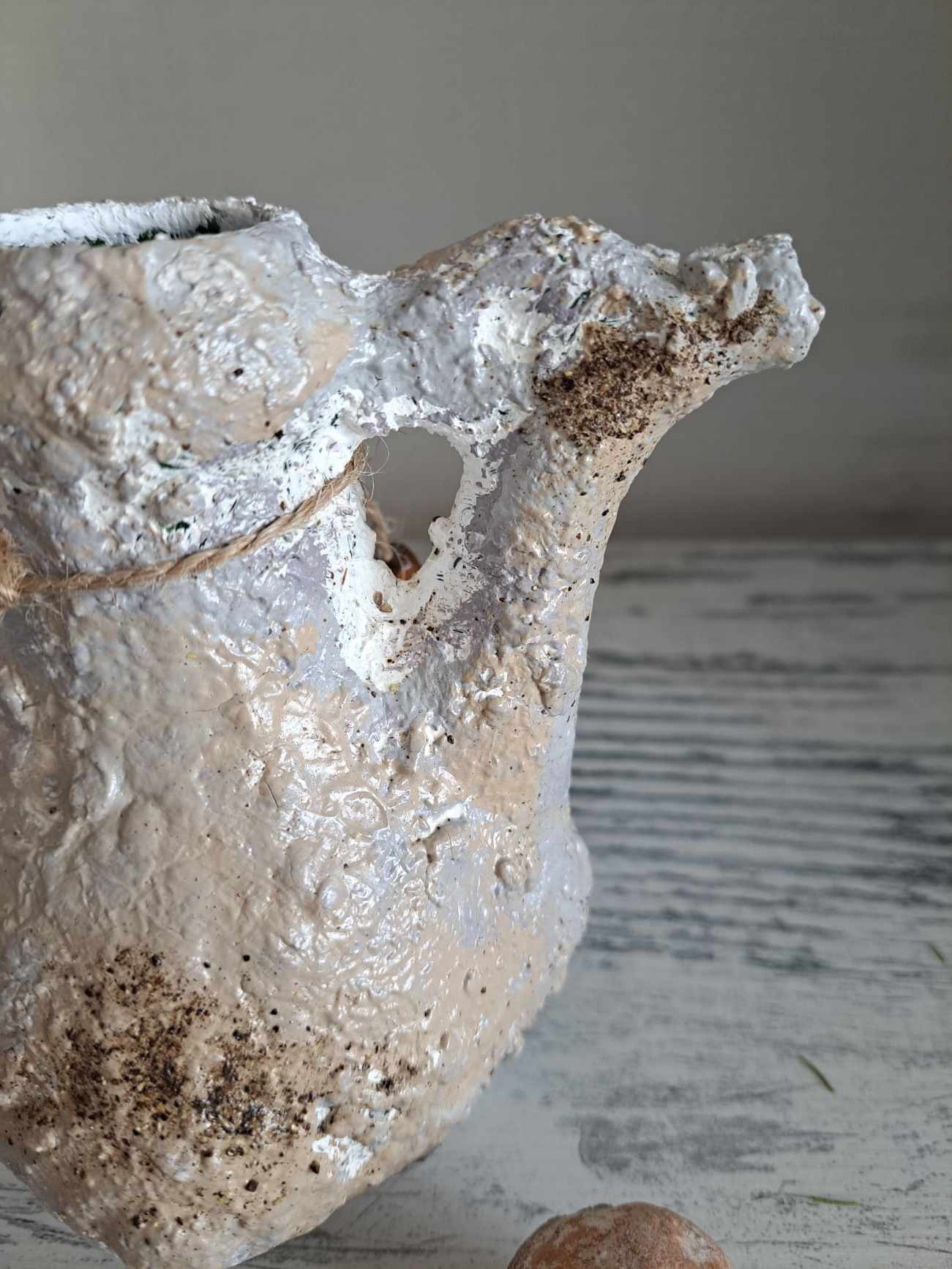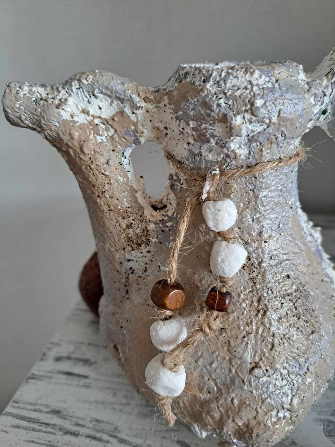 Глинено бърдуче с ръчно направен ефект на камък и ръчно направена декорация.